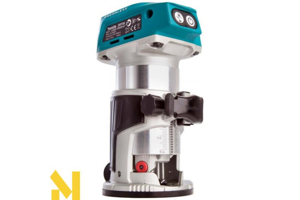 Makita DRT50RTEX3 - компактний акумуляторний фрезер, що має високоефективний безщітковий двигун з регульованою частотою обертів від 10000 до 30000 об/хв, цангу розміром 6 і 8 мм, глибину 0 занурення мм. Ергономічна і компактна конструкція забезпечує більш зручне управління і більш високу маневреність інструменту, гумові вставки забезпечують зручну фіксацію інструменту в руці і знижують втому користувача. Додаткові аксесуари надають зручність під час роботи і значно розширюють функціонал інструменту. Фрезер працює від акумуляторів Makita LXT з напругою 18 В ємністю від 1.5 до 6 А-год.