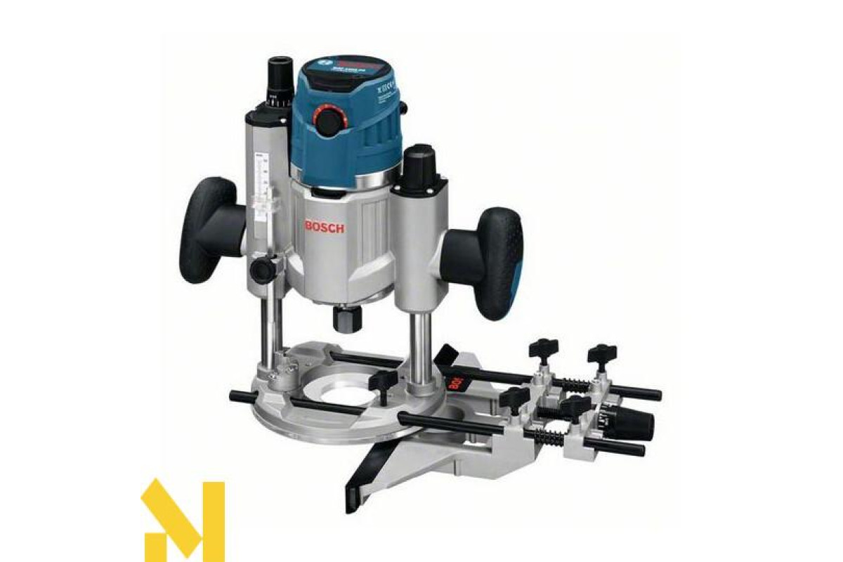 Інструмент укомплектований затискними цангами, які дають можливість працювати з фрезами з хвостовиком 8 мм і 12 мм. З технологією "After Lock" Ви зможете досягти потрібної Вам точності фрезерування в межах 1/10 мм. Пружинна корзина має хід в 76 мм, що дає можливість досить сильно занурювати фрезер. Інструмент має функцію фіксації шпинделя валу.