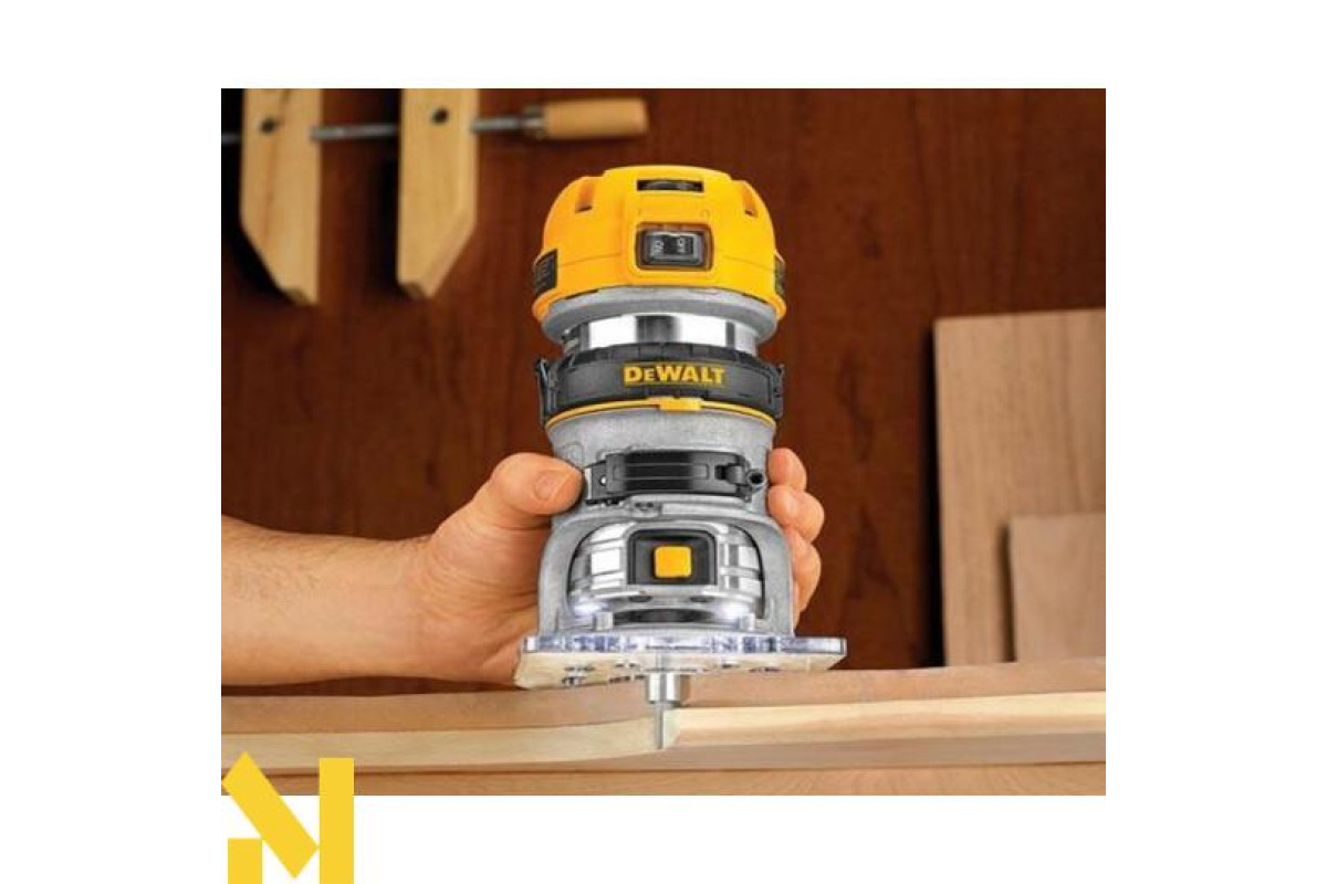 Фрезер DeWalt D26204K - професійний інструмент, який підійде для будь-яких фрезерувальних робіт, а також гарантує дуже якісну обробку заготовок з алюмінію або пластику. Інструмент відмінно справляється з деревиною. До числа якостей апарату можна внести електронну систему регулювання швидкості зі зворотним зв'язком для утримування встановленого Вами обертового моменту при різних навантаженнях. Обертовий момент двигуна становить 16000-27000 обертів на хвилину, і, як було сказано вище, у Вас є можливість його регулювати. Це добре проявить себе у разі потреби надточного регулювання фрезерування. Фрезерна машина володіє ергономічним і компактним дизайном, хоча і має вбудований потужний двигун зі значеннями 900 Вт (вихідна потужність - 620 Вт). Мотор оснащений функцією установки на додатковій базі. Додаткова точність досягається за рахунок регулювання глибини обробки за допомогою підставки агрегату. Вам доступно 5 фіксованих рівнів занурень інструменту. Апарат укомплектований гумовими рукоятками, а також вбудованим ліхтариком для зручності роботи. За допомогою фіксатора шпинделя Ви зможете швидко і без особливих зусиль змінити приналежності. Цанга, яку використовує інструмент, має довжину 6-8 мм.