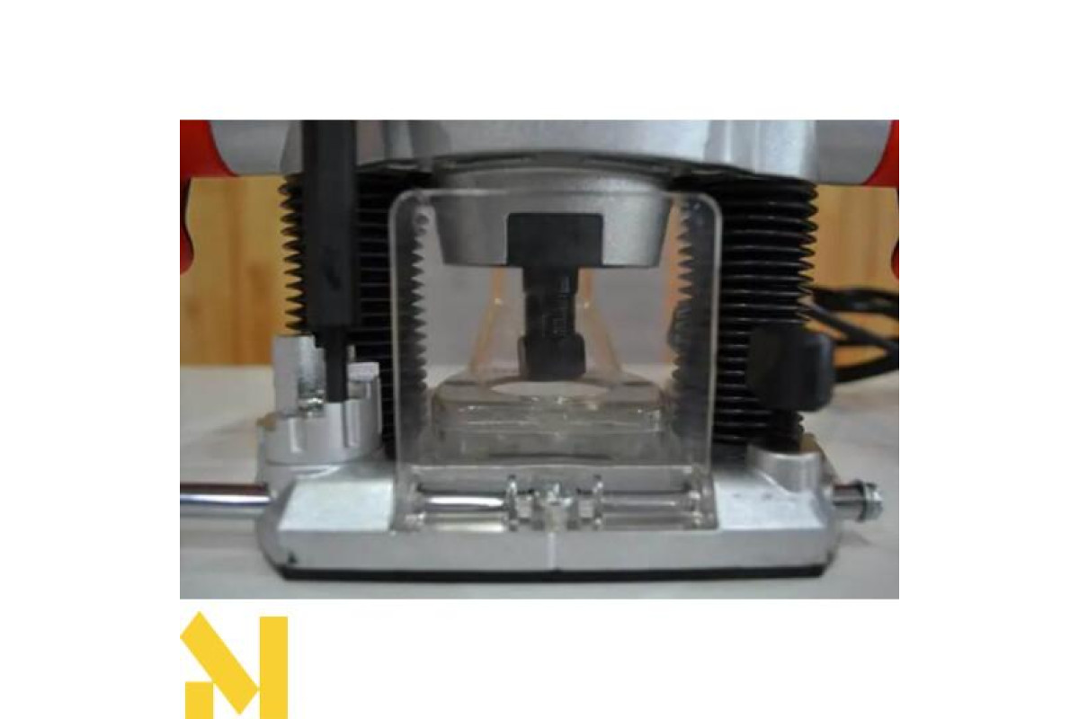 Модель HOLZMANN OBF 1200 має блокування шпинделя – заміна фрези проводиться безпечно та швидко. Прозорий пластиковий захисний кожух одночасно захищає користувача від пилу та стружки та не заважає спостерігати за рухом фрези під час роботи. Відведення пилу та стружки з робочої області проводиться з використанням адаптера.