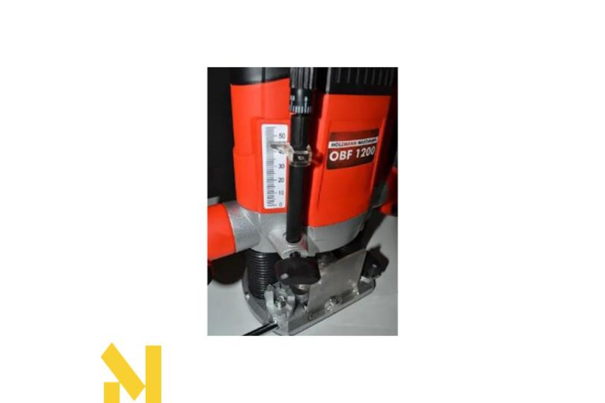 Фрезер HOLZMANN OBF 1200 має міцні алюмінієві корпус та опорну плиту, а також дві ручки ергономічної форми, які досить зручно розташовуються в руках користувача. На правій рукоятці розташована клавіша увімкнення та кнопка фіксації цієї клавіші в натиснутому положенні. На лівій рукоятці знаходиться колесо-регулятор частоти обертів шпинделя. У лівій рукоятці зосереджено важіль фіксованого налаштування глибини фрезерування, за допомогою якого можна легко і точно налаштувати положення фрезерного кошика. Великий хід фрезерного кошика забезпечує більшу глибину фрезерування.