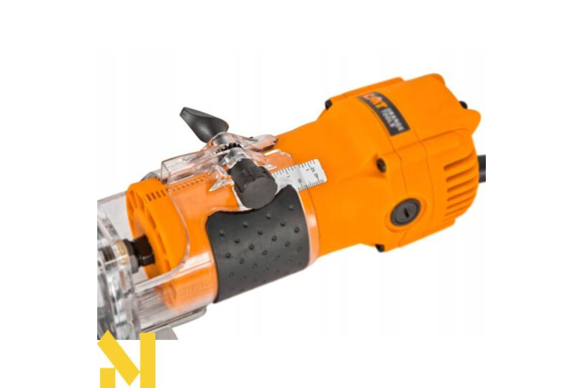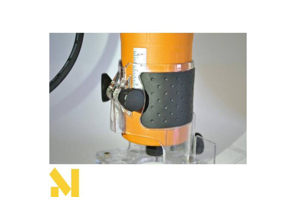 Рифлена алюмінієва шкала на корпусі забезпечує точну установку глибини фрезерування.