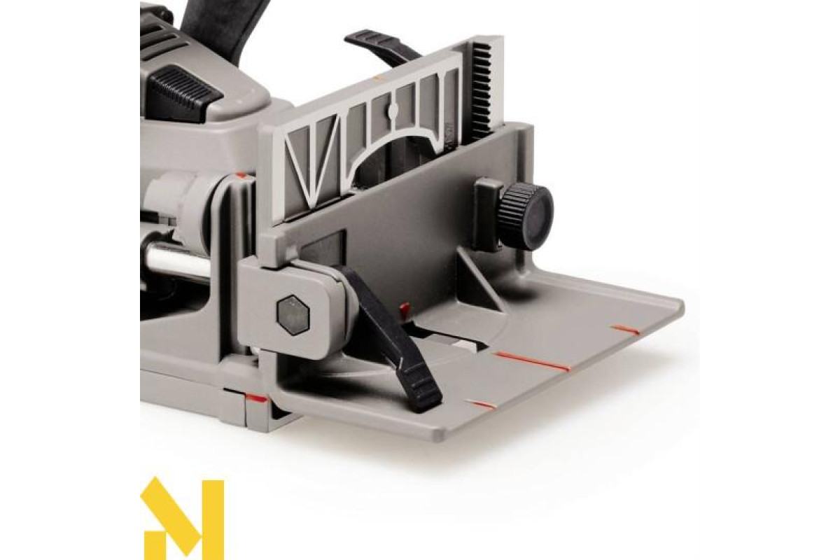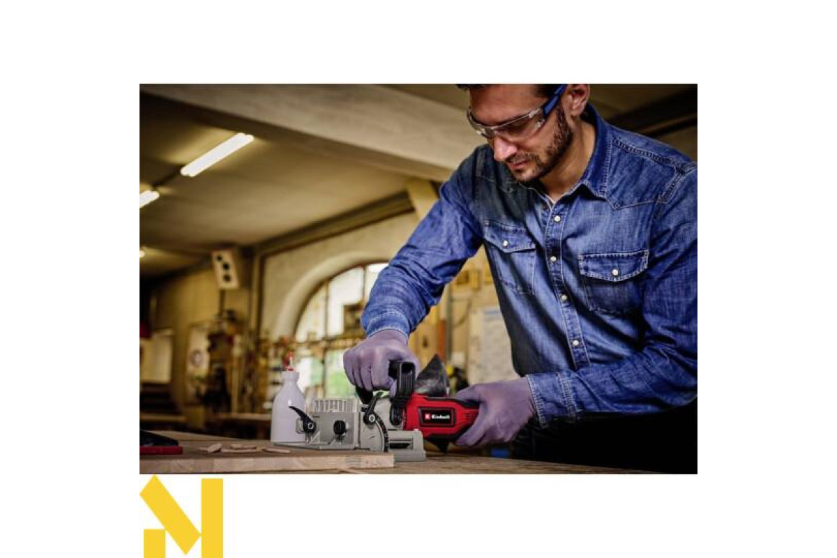 Фрезер Einhell TE-BJ 900 завдяки потужності 900 Вт - незамінна річ для виготовлення моделей і меблів у стилі DIY. Алюмінієва конструкція забезпечує точне фрезерування пазів і плоских штифтових з'єднань і підходить для всіх наявних у продажу плоских штифтів розміром до типу 20. Зручний фрезер високо оцінюється завдяки безступінчастому регулюванню висоти, безступінчастому регулюванню кута до 90° і 6-ступінчастому швидкому регулюванню глибини фрезерування. Блокування шпинделя забезпечує легку заміну фрези. Ключ для переднього отвору, мішок для збору пилу і фрезерний ніж, товщиною 4 мм (Ø 100 мм) входять до комплекту постачання. Завдяки всмоктувальному адаптеру фреза сумісна з пилососами Einhell для вологого/сухого прибирання.