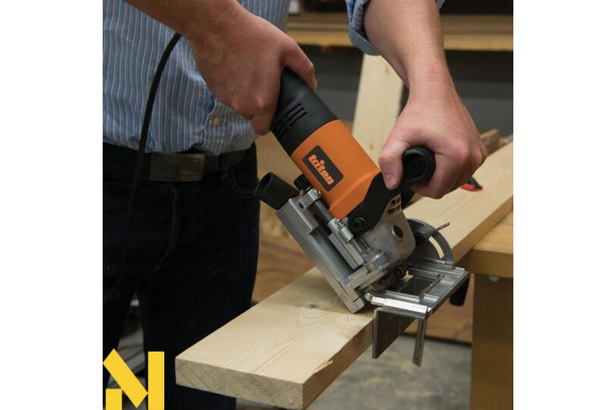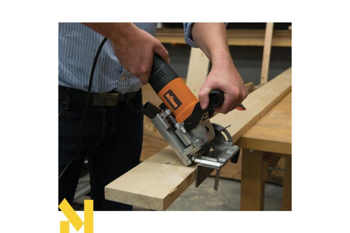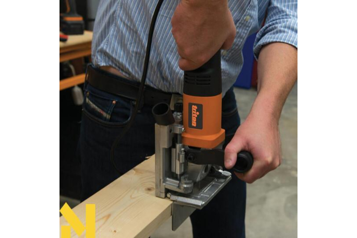 Потужний ламельний фрезер потужністю 760 Вт із основою, огорожею та корпусом приводу з литого алюмінію. Створює швидкі, міцні з'єднання для меблів і конструкції стелажів. Суцільнометалева передача для тривалого терміну служби.