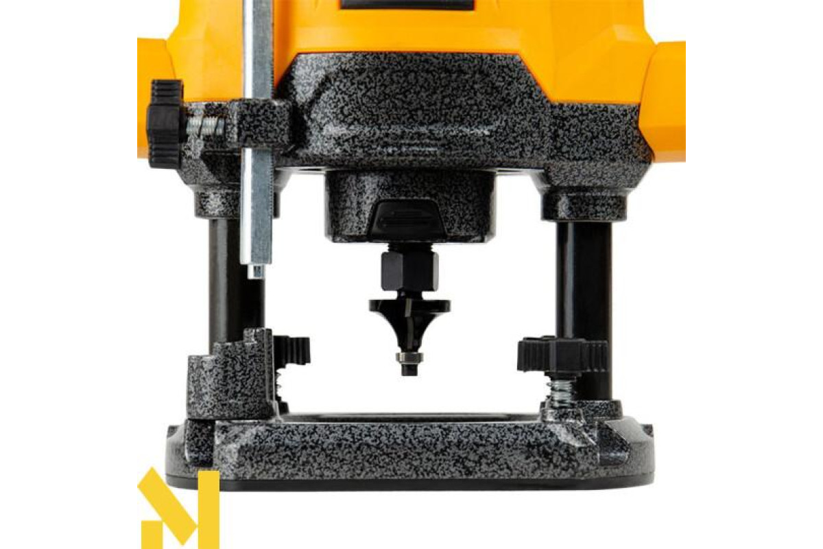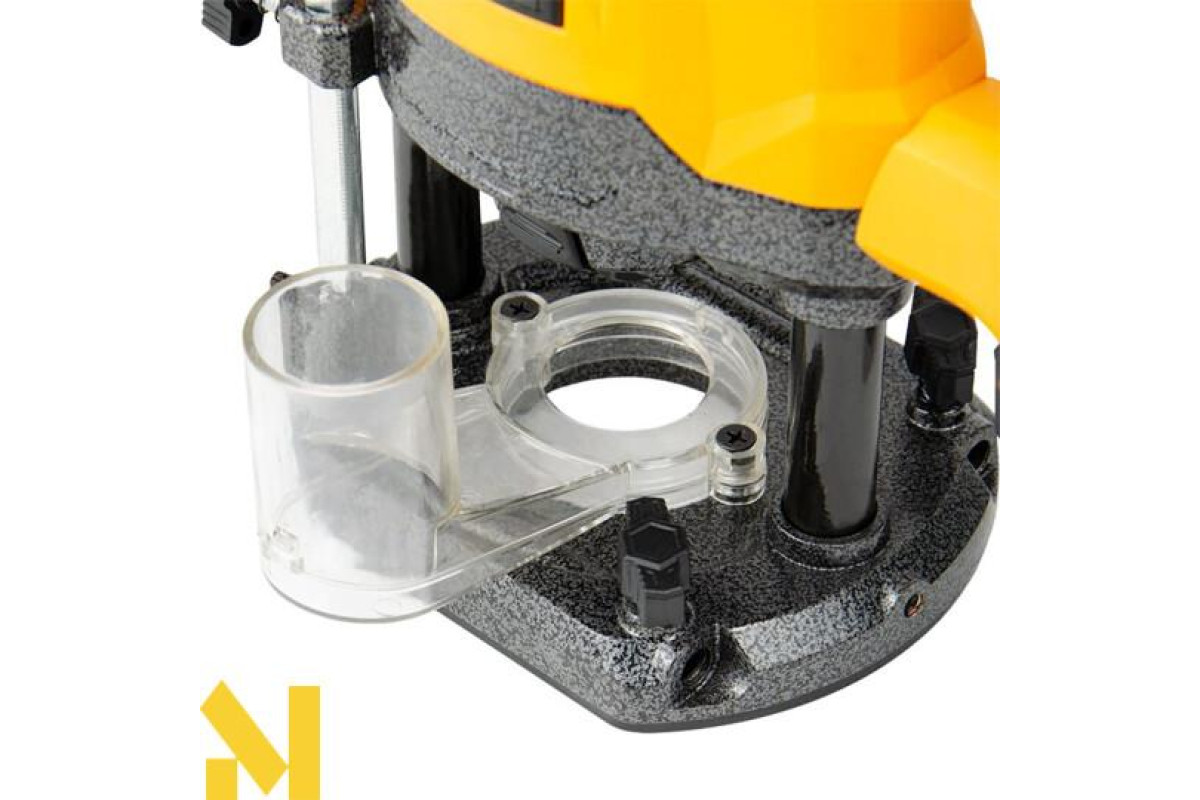 Потужний двигун на 1600 Вт впорається з виконанням складних завдань з обробки деревини будь-якої породи, а на опорній платформі встановлено 7-позиційний упор револьверного типу для швидкої зміни глибини фрезерування.