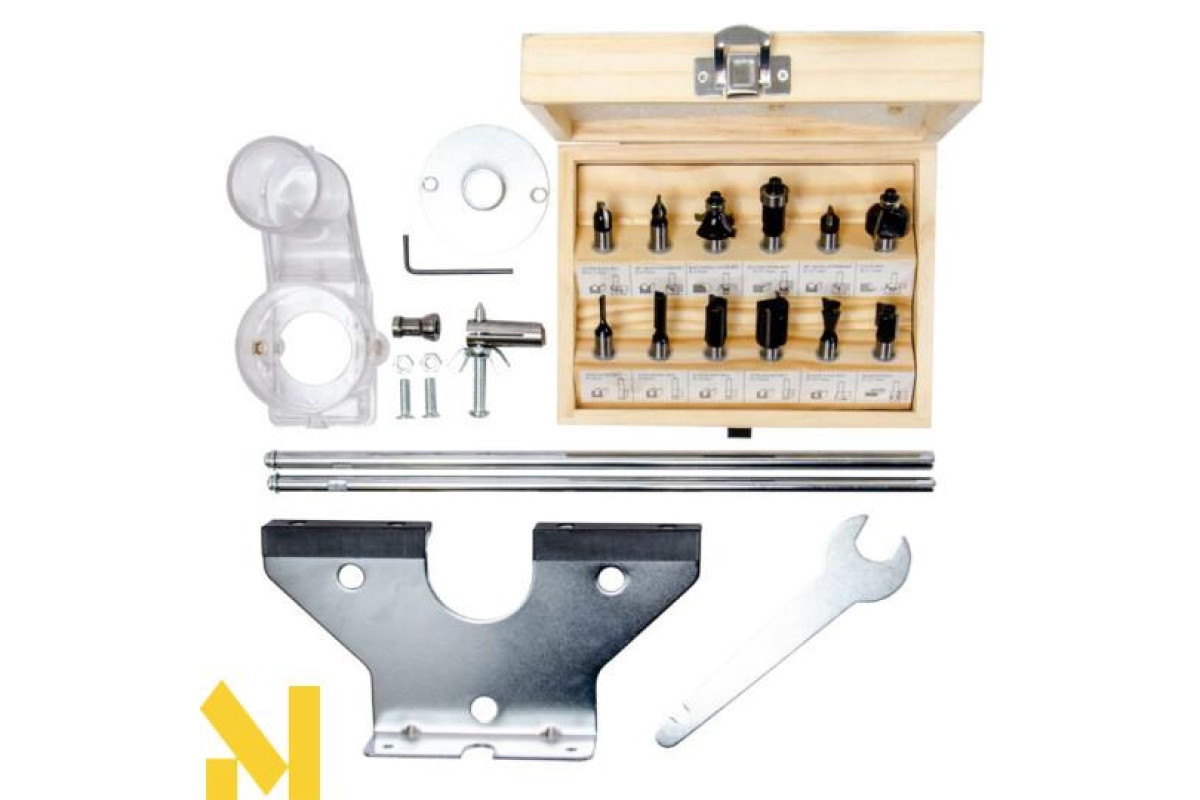 Комплектація: | ключ 1 шт, паралельний упор з двома напрямними штангами 1 шт, цанговий патрон 6 мм 1 шт, цанговий патрон 8 мм 1шт, набір фрез (12 од.) |