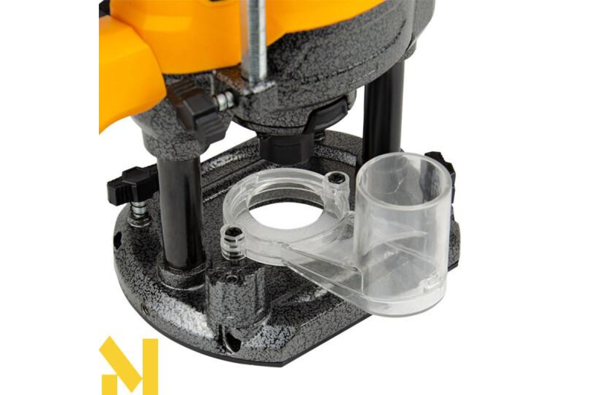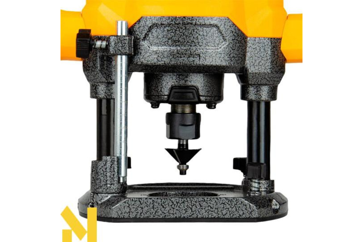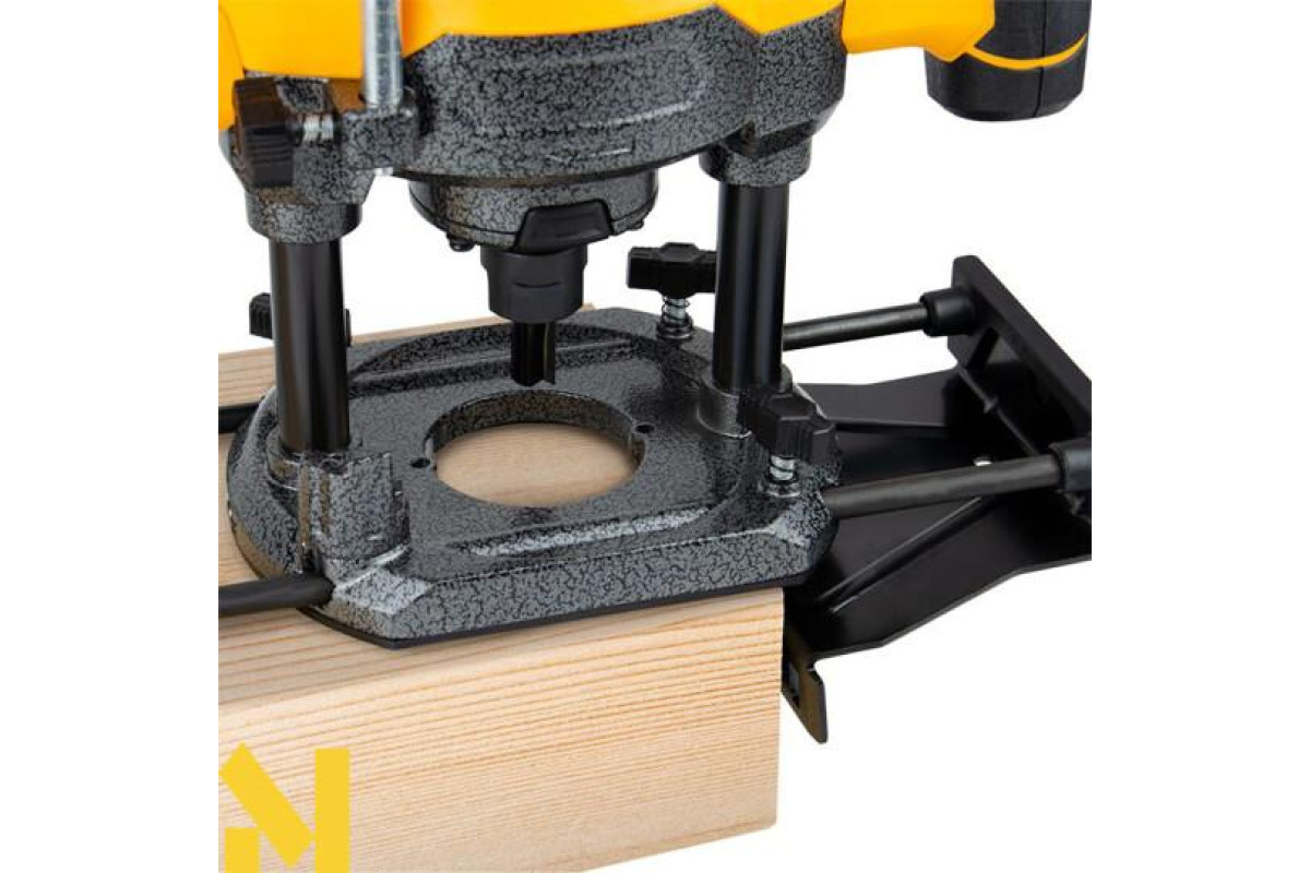 Потужний двигун на 2000 Вт впорається з виконанням складних завдань з обробки деревини будь-якої породи. Швидка зміна глибини фрезерування забезпечується 7‑позиційним упором револьверного типу на опорній платформі.