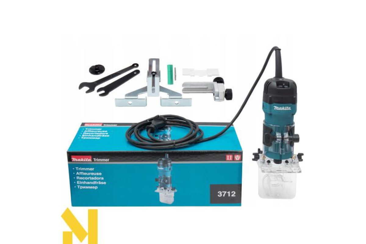 Фрезерний верстат Makita 3712, заміна Makita 3710, являє собою зручний фрезер з живленням від мережі потужністю 530 Вт, вага якого не перевищує 1700 г. Makita 3712 має стандартне кріплення для аксесуарів і має робочу швидкість до 32 000 об/хв.