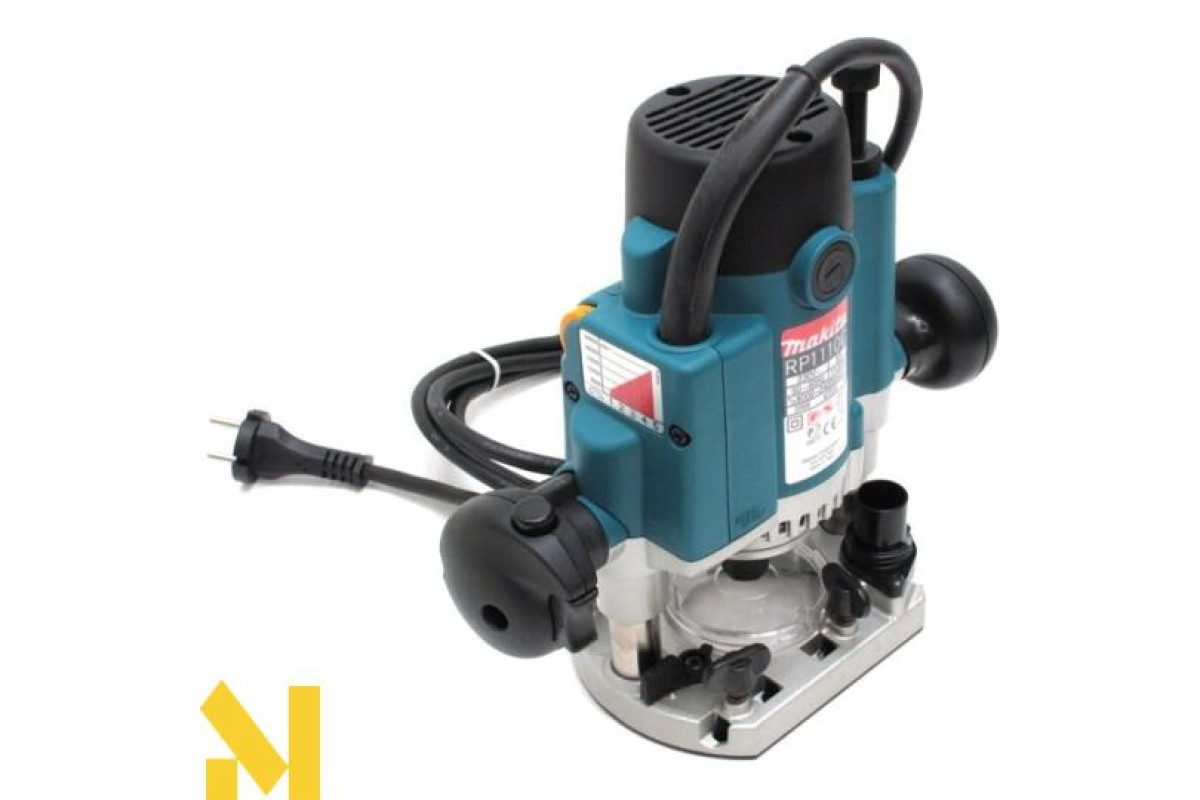 Фрезер Makita RP1110CJ обладнаний 1100Вт двигуном. Завдяки йому, вдається досягти високої чистоти обробки матеріалу. Запропонована модель має надійну опорну плиту, виготовлену з литого алюмінію, 8-мм цанговий патрон. Обмежувач глибини можна коригувати. А чистоту робочого місця забезпечить патрубок для пилососа, що має дві фіксуючі позиції. До речі, встановити його можна як над, так і під корпусом. За точність різання відповідає електросистема.