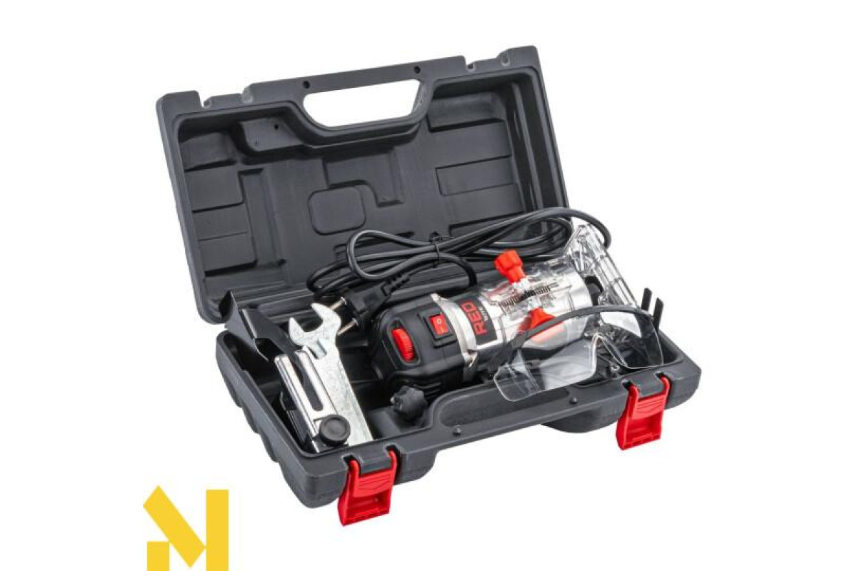 Фрезер оснащений ефективним двигуном, який розвиває швидкість 30 000 обертів на хвилину. Це забезпечує точну обробку всіх легких матеріалів як на кромках, так і при створенні паралельних канавок.
