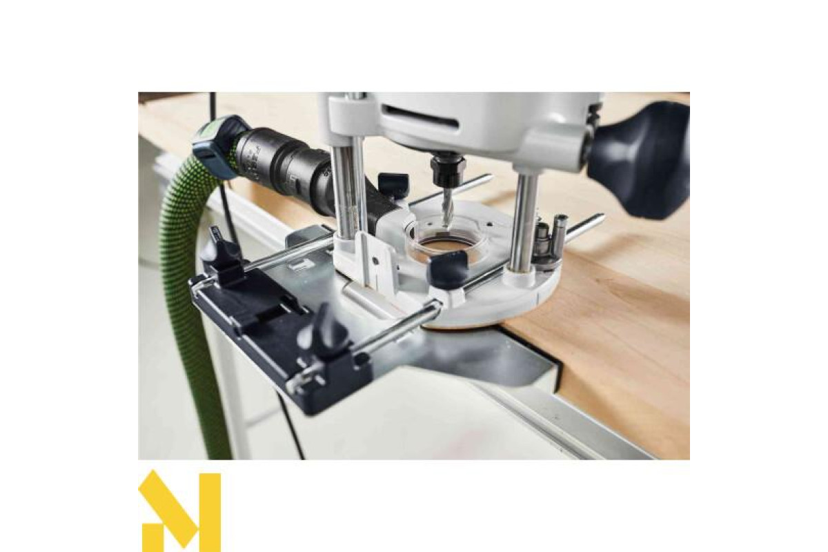 Стабільно паралельне положення фрезерного столу і основи завдяки одночасній фіксації глибини на обох напрямних стійках