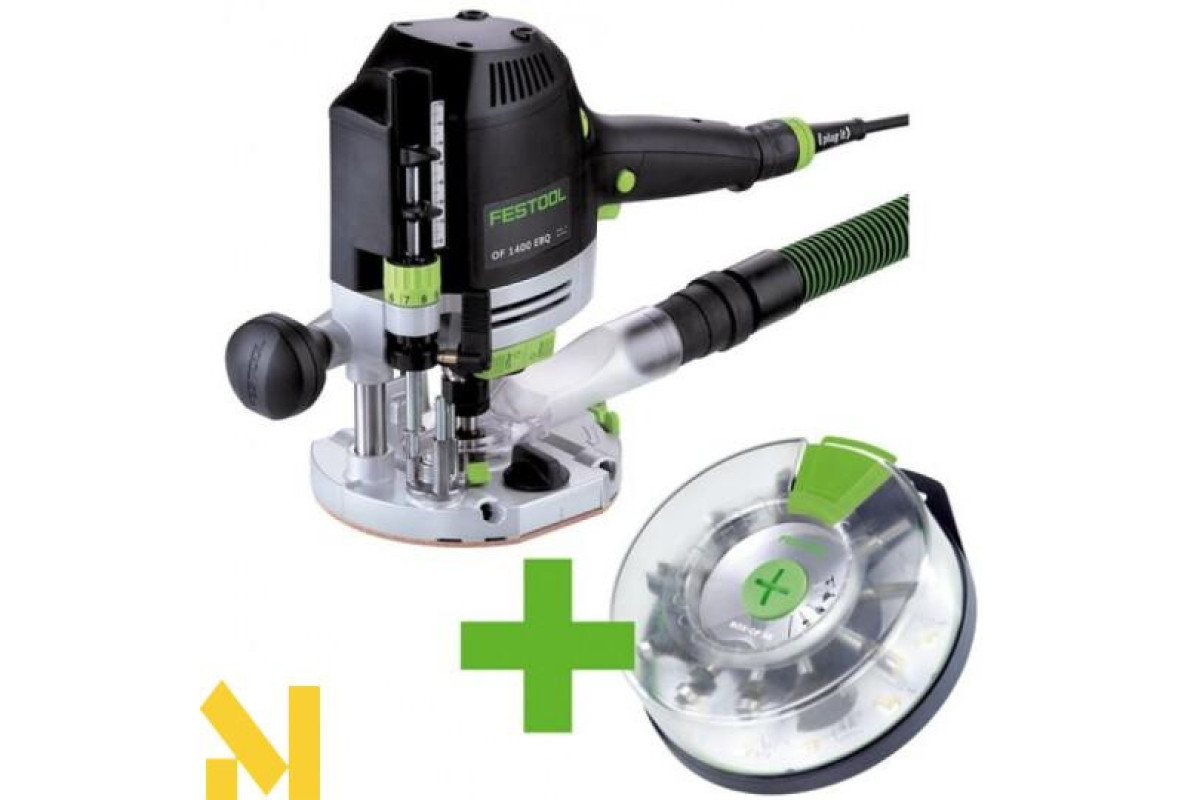 Споживана потужність 1400 Вт Число оборотів холостого ходу 10000-22500 хв-1 Макс. діаметр фрези 63 мм Точне регулювання глибини фрезерування 8 мм Діаметр затискної цанги 6-12,7 мм Хід фрези 70 мм роз'єму пиловидалення 27/36 мм Маса 4,5 кг OF 1400 вагою 4,5 кг є найлегшою машинкою в своєму класі і, при цьому, має хід 70 мм. Це є особливою перевагою при врізанні фурнітури або фрезерування за шаблоном.Комплектація: затискна цанга 8 ммзатискна цанга 12 ммбічний упор з системою точного регулюваннякопіювальне кільце 30 ммверхній витяжний кожухпиловловлювачкасета з фрезамидопоміжний інструменту систейнері SYS 4 T-LOCПереваги:Просте регулювання глибини фрезерування з точністю до 1/10 ммСтійкість завдяки двосторонньому зажиму стійокЗручна зміна фрези з допомогою балансира і храповика, швидше навряд чи можливоЗміна копіювального кільця без інструментуВидалення до 99 % пилу при обробці крайок – завдяки витяжному кожуха і пылеулавливателюСистема швидкого гальмування і ММС-електронікаЗастосування:Закруглення країв, зняття фасок, виконання вибірок і профілюванняФрезерування пазів під ущільнювач або замки і петлі з допомогою спеціального пристосуванняФрезерування фігурних і круглих отворів з допомогою універсального фрезерного шаблонуВиготовлення пазів для задніх стінок, врізання шпонокФрезерування мінеральних матеріалів (максимум 45 мм)- ВиробникFestool