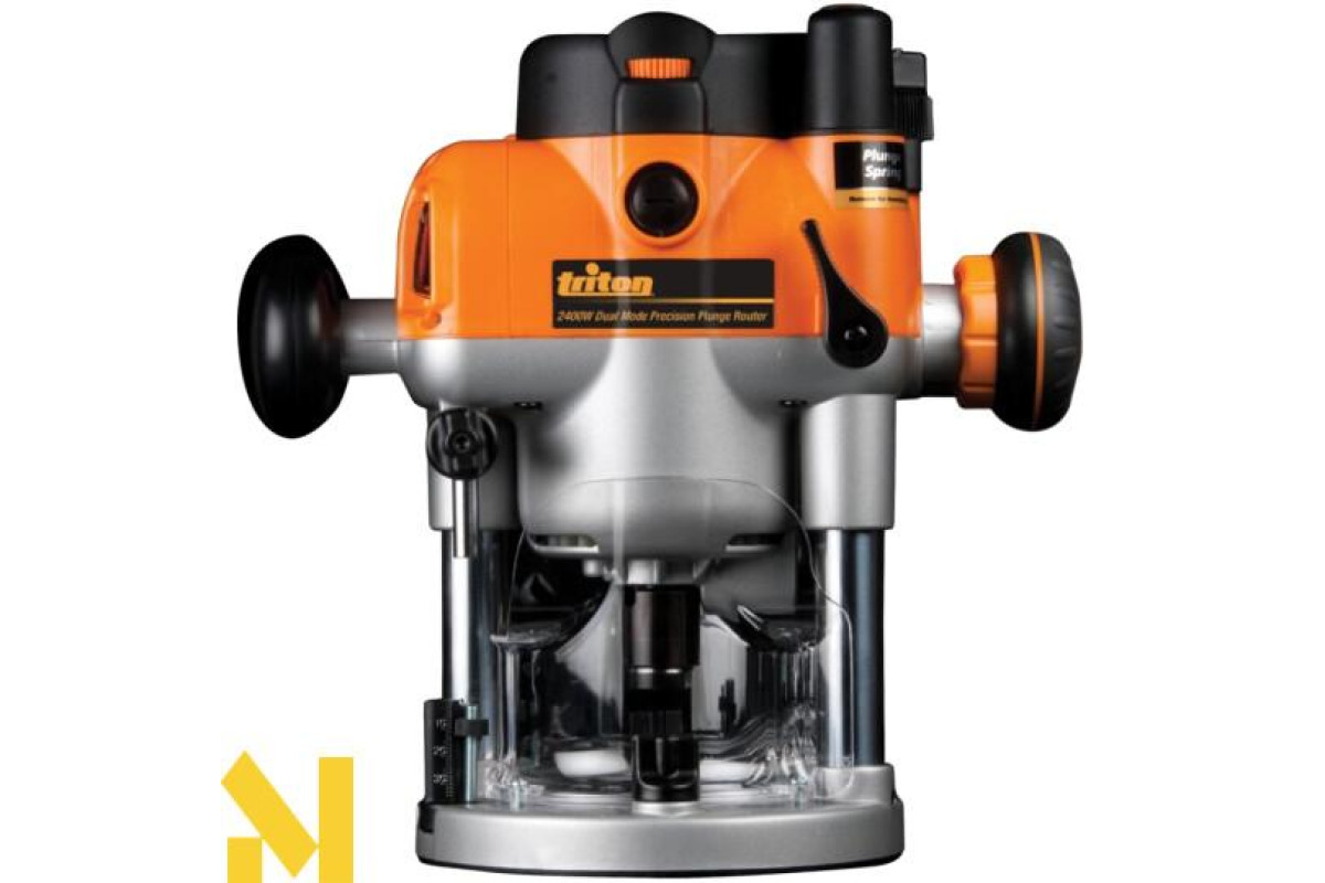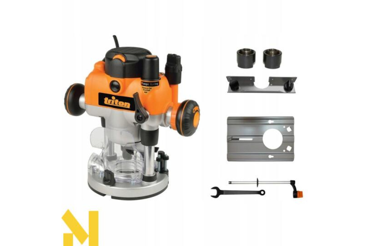 Потужний двигун 2400 Вт / 3-1/4 к.с. з електронним керуванням. Заміна фрези одним гайковим ключем «над столом». Автоматичне блокування валу та блокування живлення в режимі зміни фрези. Швидке регулювання глибини занурення за допомогою ручки намотування та точне регулювання глибини за допомогою мікронамотувача. Швидке перемикання в звичайний режим занурення. Знімна плунжерна пружина для легкого підйому та регулювання. Ефективний пилозбірник.