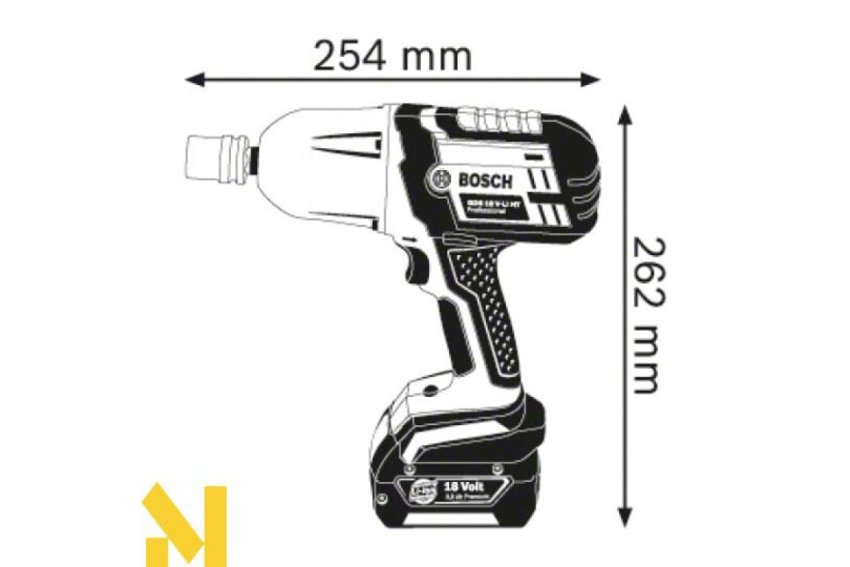 Найпотужніший ударний акумуляторний гайковерт на 18 В Bosch GDS 18 V-LI HT, з максимальним обертовим моментом (650 Нм) в своєму класі. Особливості: виняткова міцність і стікість завдяки суцільнометалевому виконанню редуктора і металевого корпусу; з вагою 3,0 кг це один з найлегших ударних гайковертів "High-Torque"; унікальна літій-іонна технологія класу Premium від Bosch для більшого часу роботи на одному заряді; Bosch Electronic Cell Protection (ECP): система захисту акумулятора від перевантаження, перегріву та глибокого розрядження; зручний індикатор заряду: показує рівень заряду в будь-який час.