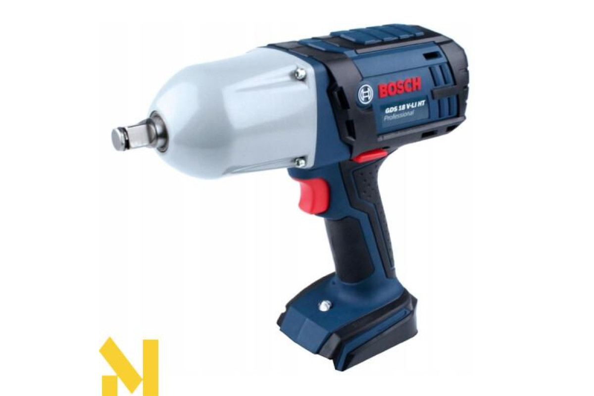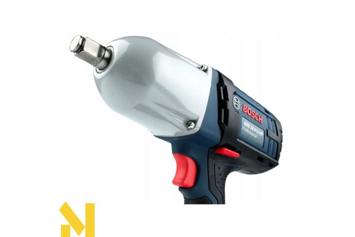 Гайковерт Bosch GDS 18 V-LI HT з імпульсом 0-2100 уд/хв, високим крутним моментом 650 Нм і 0-1900 об/хв. Працює від літій-іонного 18 В акумулятора. Призначений для загортання і викручування гайок і шурупів (М12-М20) в бетон і метал. Квадратний патрон ½ дюйма. Металевий корпус і редуктор.