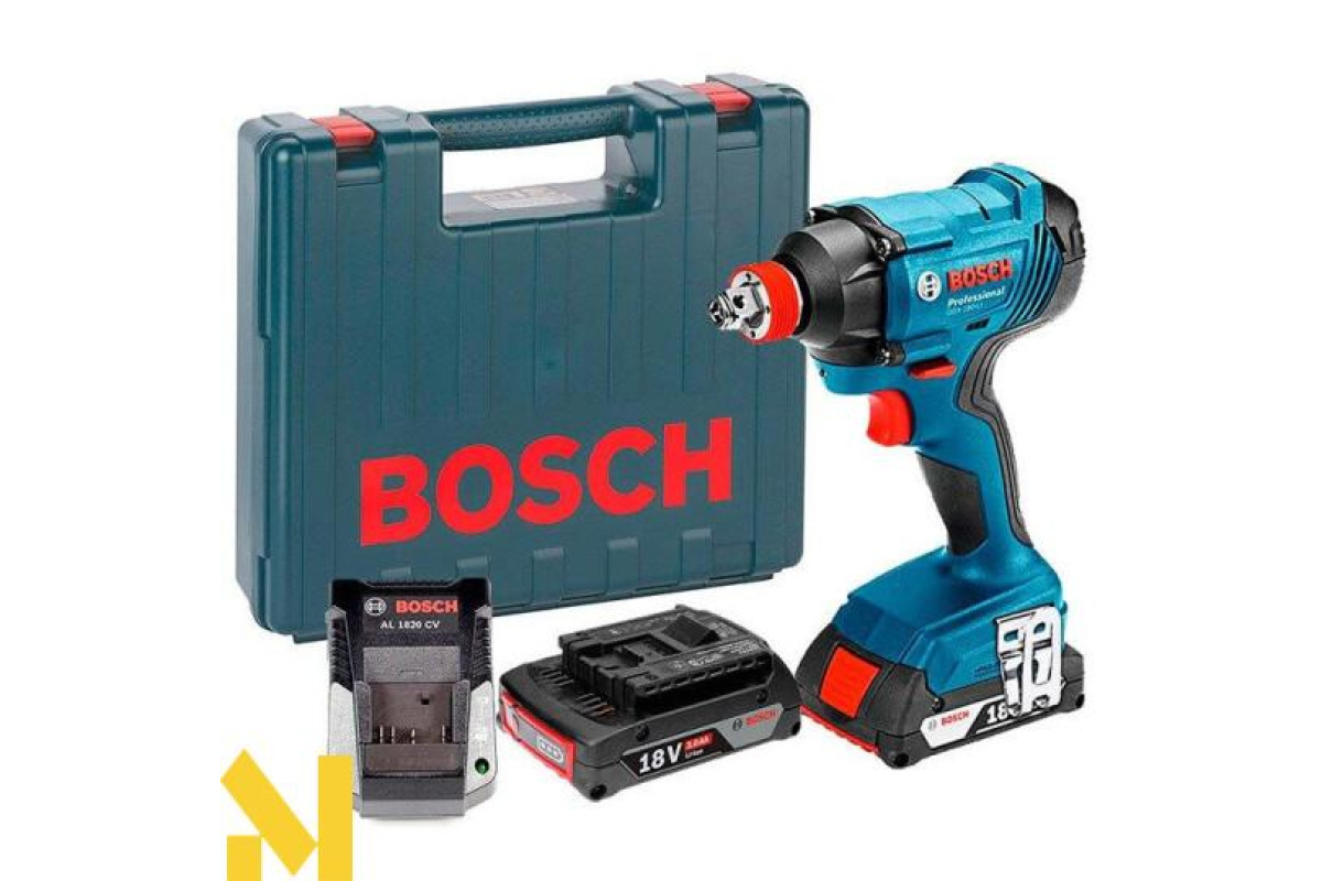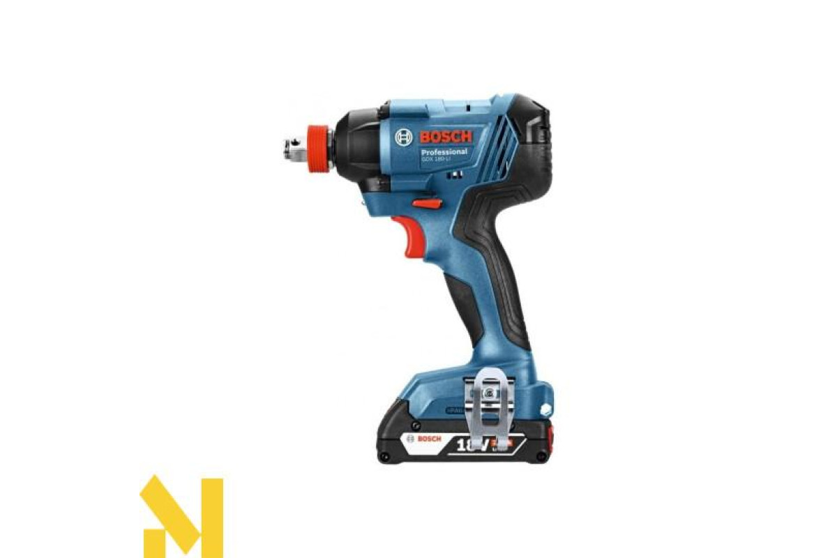 Ударний гайковерт Bosch GDX 180-LI Professional - єдиний ударний гайковий ключ на ринку з дворядним держателем, який закручує-відкручує болти, гвинти, а також виконує свердління. Шестигранний ¼ дюйма тримач для гвинтового приводу і свердління, квадратний утримувач ½ дюйма для кріплення болтів. Високий крутний момент 180 Нм, регульовані кількість оборотів (до 2800 об/хв) і число ударів (до 3600 уд/хв) забезпечують відмінну швидкість робіт. Наводиться в дію від Li-Ion 18 V акумулятора 3 Ah (йде в комплекті разом з зарядної станцією AL 1820 CV). Гайковерт з дворядним держателем - шестигранником ¼ дюйма і квадратом ½ дюйма.