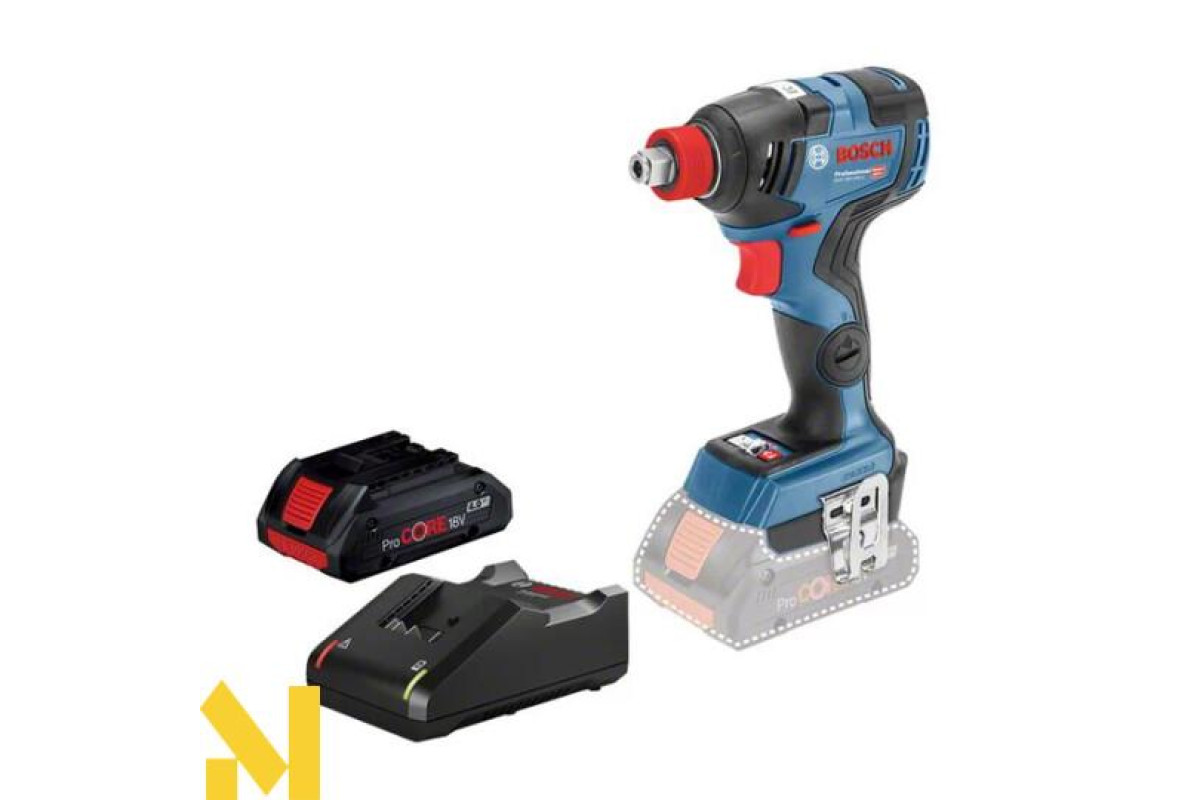 Акумуляторний ударний дриль-гайкокрут GDX 18V-200 C Professional + 1x АКБ ProCORE18V 4.0Ah + Швидкозарядний пристрій GAL 18V-40 Professional у картонній коробці.