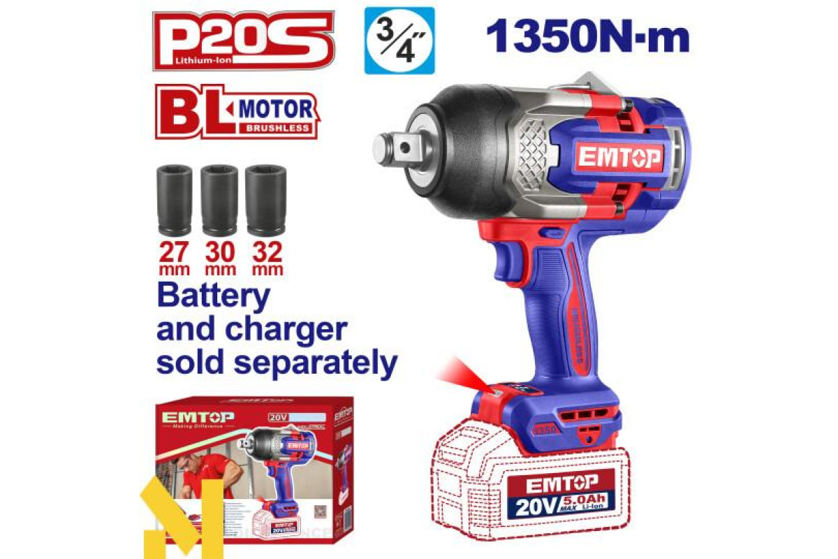 Гайковерт акумуляторний EMTOP ECIWL201351