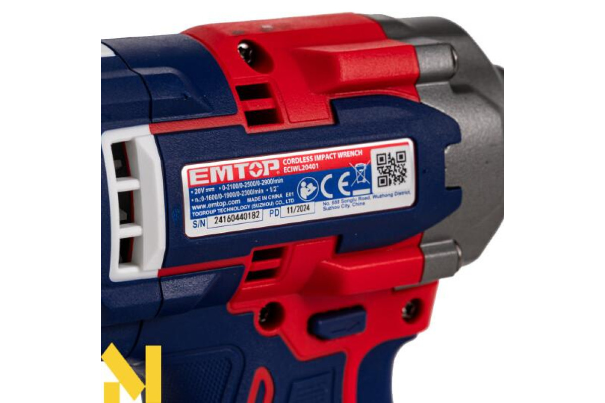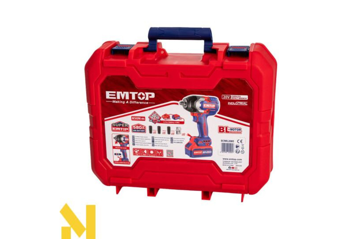 Довговічність і надійність: Emtop ECiWL2085 виготовлений з міцних матеріалів, що забезпечує довгий термін служби та стійкість до механічних навантажень. Цей гайковерт витримує інтенсивне використання, не втрачаючи своєї ефективності.