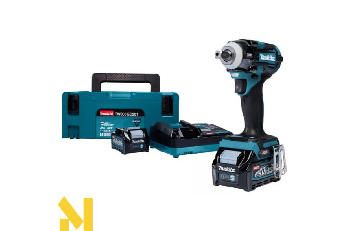 Акумуляторний ударний гайкокрут XGT, 40 В, 2,5 Аг х 2 шт, DC40RA, Makpac, 350 Нм, 1/2",TW005GD201