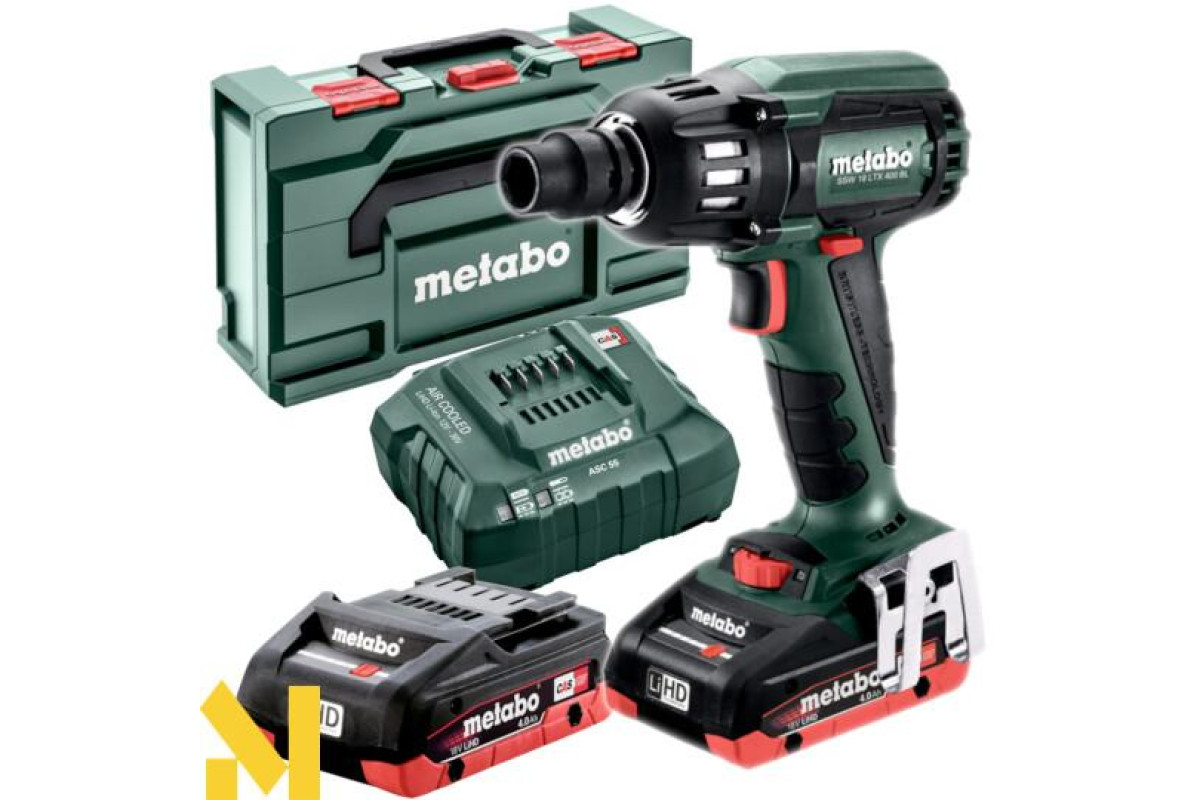 Акумуляторний ударний гайковерт Metabo SSW 18 LTX 400 BL LiHD 2x4.0 Агод на відміну від базової моделі гайковерта Metabo SSW 18 LTX 400 BL, поставляється з двома акумуляторами серії LiHD і ємністю 4.0 Агод.