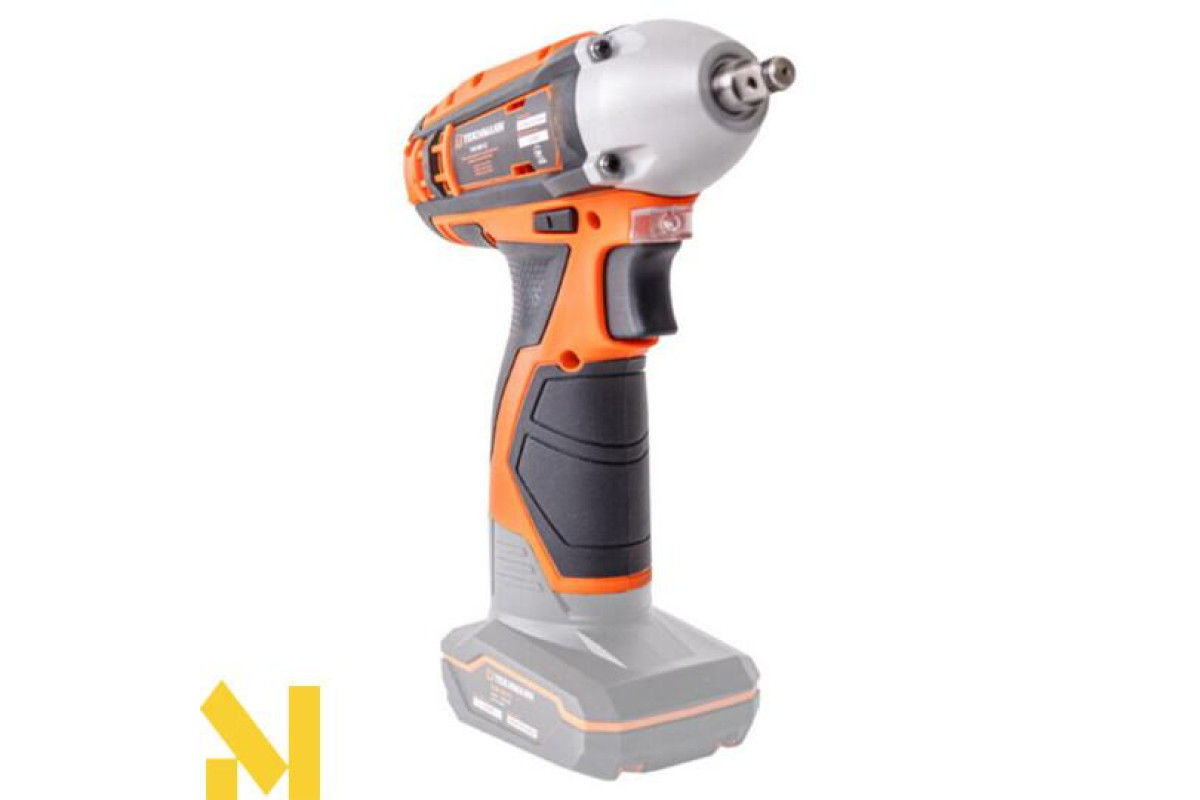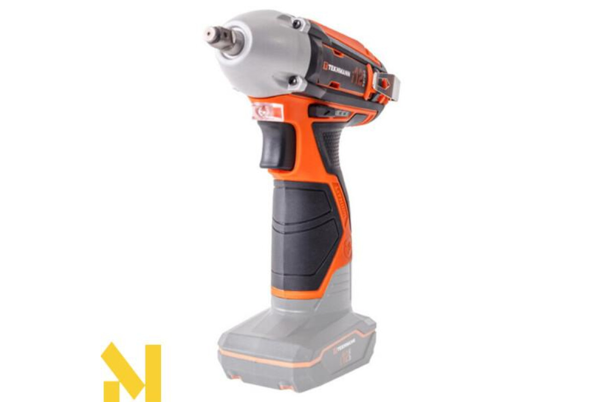 Кінцевий квадрат розміром ⅜ дюйма ударного приводу з кульковим фіксатором дозволяє використовувати стандартні головки для гайок різного розміру та інші змінні насадки через перехідні адаптери.