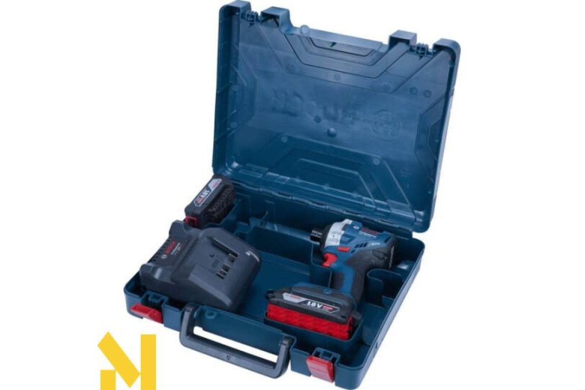 Ударний гайкокрут із безщітковим двигуном, який працює від 18-вольтових літій-іонних акумуляторів, що стійкі до саморозряду та не мають ефекту пам'яті. До комплекту включено дві батареї ємністю 2 Ah.