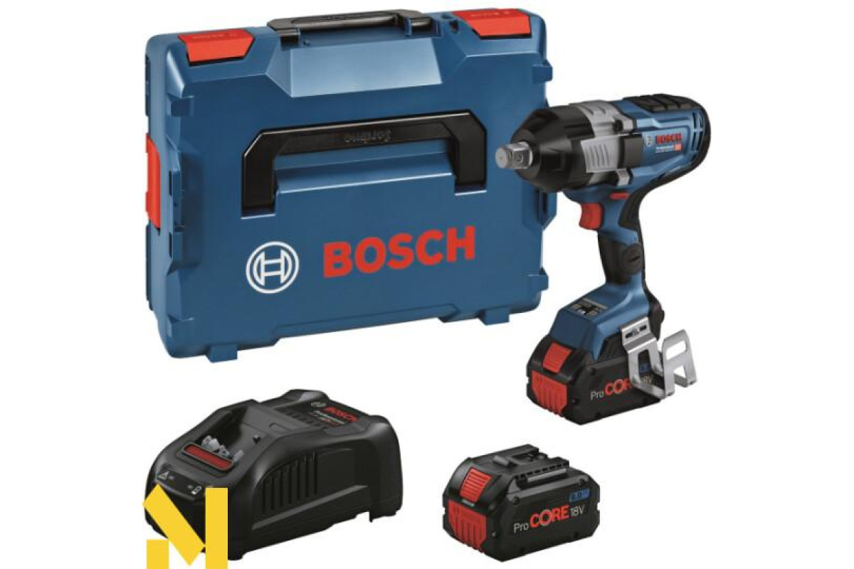 Bosch Professional GDS 18V-1600 HC — потужний акумуляторний ударний гайкокрут із безщітковим двигуном BITURBO, що забезпечує крутний момент при обертанніі кількості ударів з можливістю регулювання. Ідеальний для роботи з великим кріпленням, сталевими конструкціями і промисловим обладнанням. Оснащений функцією автоматичного від'єднання болтів і можливістю налаштування через додаток. У комплекті поставляється кейс L-BOXX 136, дві батареї ємністю 8 Ah і зарядний пристрій: