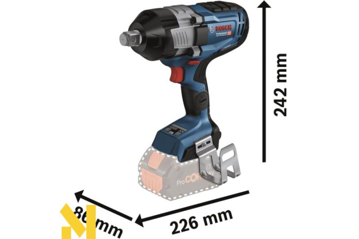 Акумуляторний ударний гайкокрут Bosch GDS 18V-1600 HC — інструмент професійного Heavy Duty класу, який оснащений надійним безщітковим мотором. Він працює від 18-вольтових літій-іонних акумуляторів, найкраще підійдуть батареї типу ProCORE18V з ємністю від 5.5 Ah.
