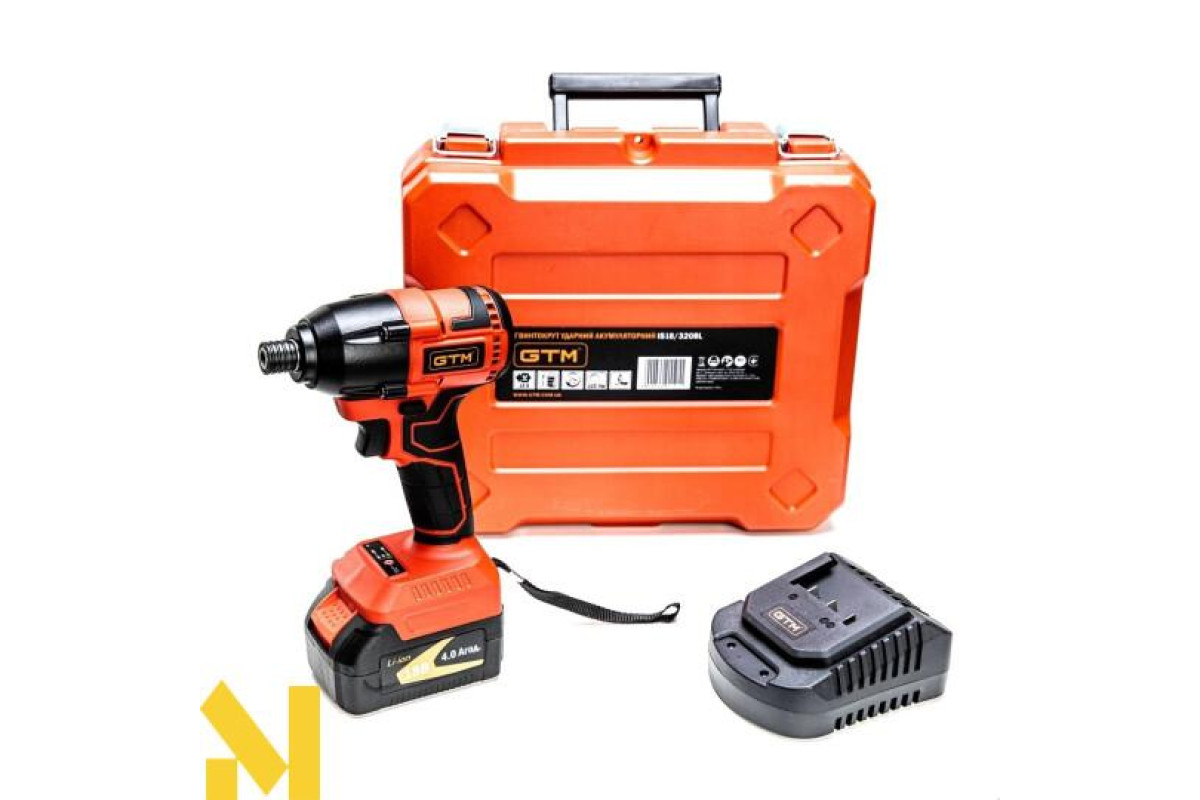 GTM IS18/320BL - компактний гвинтокрут побутового класу з живленням від Li-Ion акумуляторів напругою 18 В. У шурупокруті встановлений шестигранний патрон з фіксатором для роботи з бітами. Двигун у цій моделі безщітковий, що значно зменшує розміри корпусу і вагу.