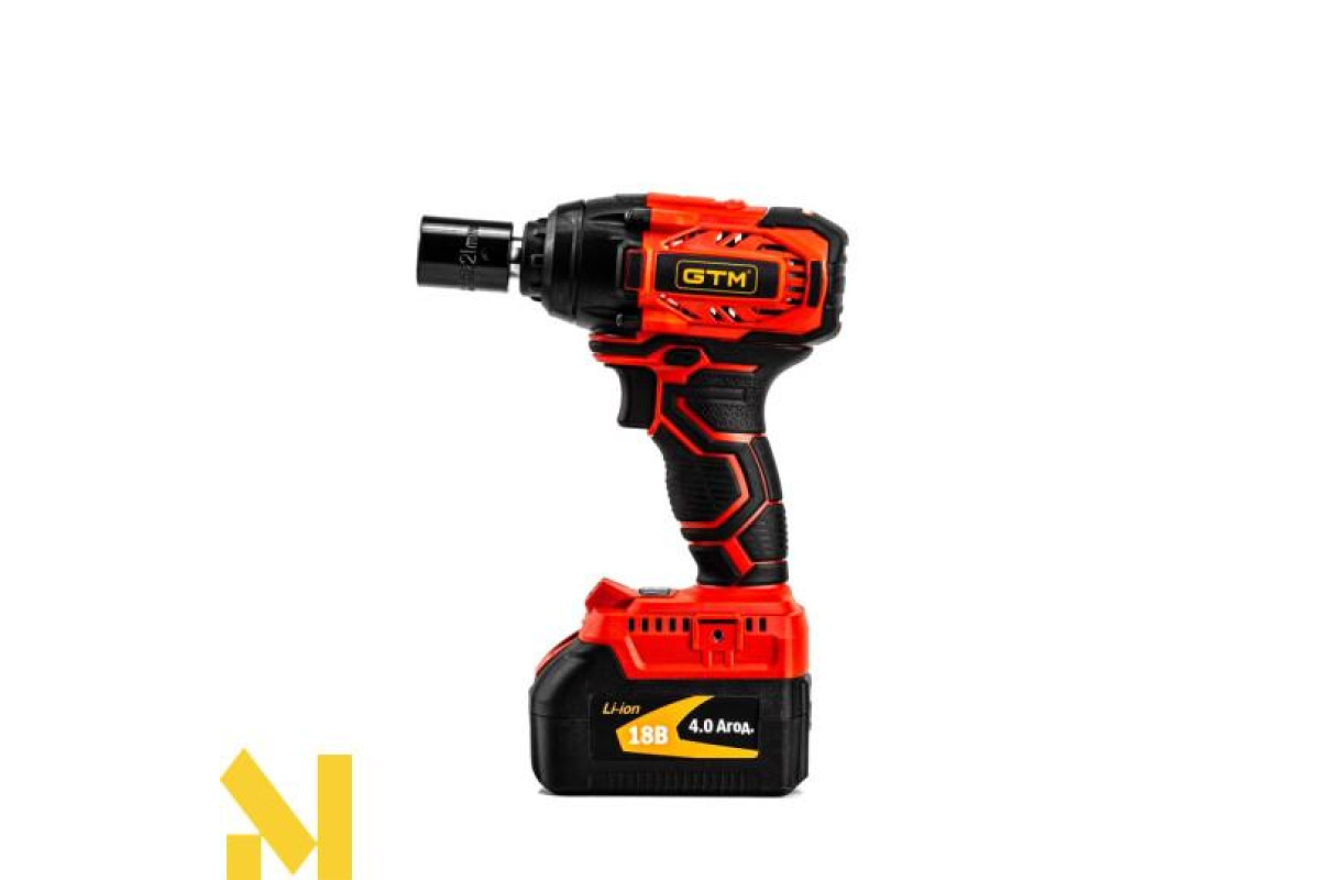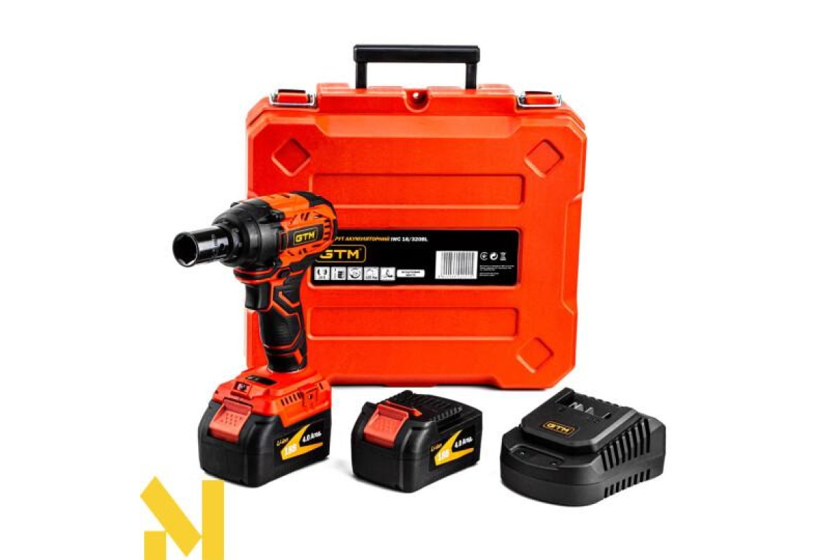 GTM IWC18/320BL - безщітковий гайкокрут професійного класу з живленням від Li-Ion акумуляторів напругою 18 В. Інструмент призначений для роботи з ударними торцевими головками з посадковим квадратом 1/2". Редуктор у даній моделі металевий у повністю металевому корпусі. Максимальний крутний момент затягування в гайкокруті становить 320 Н*м. Також є перемикач імпульсного режиму, для більш акуратної роботи з болтами.
