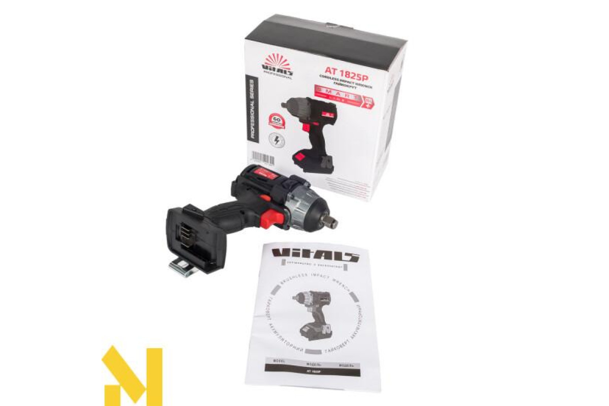Дана модель гайкокрута – частина серії SmartLine від Vitals. Весь садово-парковий і електроінструмент цієї серії працює від єдиного взаємозамінного акумулятора напругою 18 В. Таким чином, робота не залежить ні від електричних проводів, ні від бензину. Це значно спрощує використання гайкокрута.