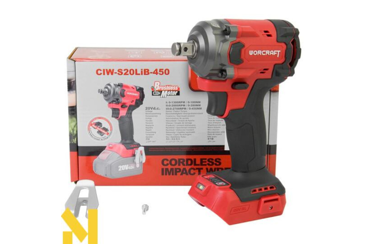 Акумуляторний безщітковий гайковерт WORCRAFT CIW‑S20LiB‑450 - для ефективного закручування і відкручування болтів і гайок.