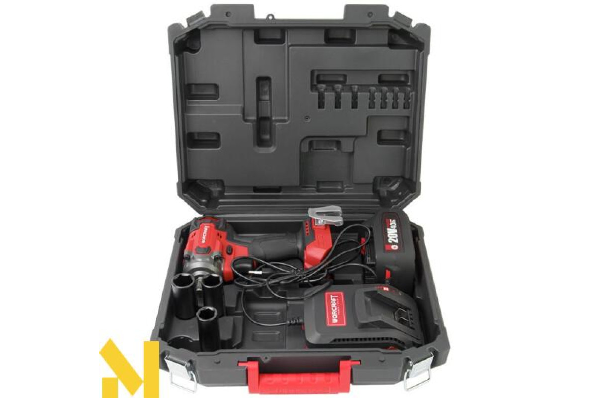 Гайковерт CIW‑S20LiBM‑450 поставляється в комплекті з потужним акумулятором, зарядним пристроєм і міцним пластиковим кейсом.