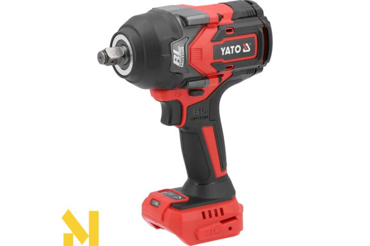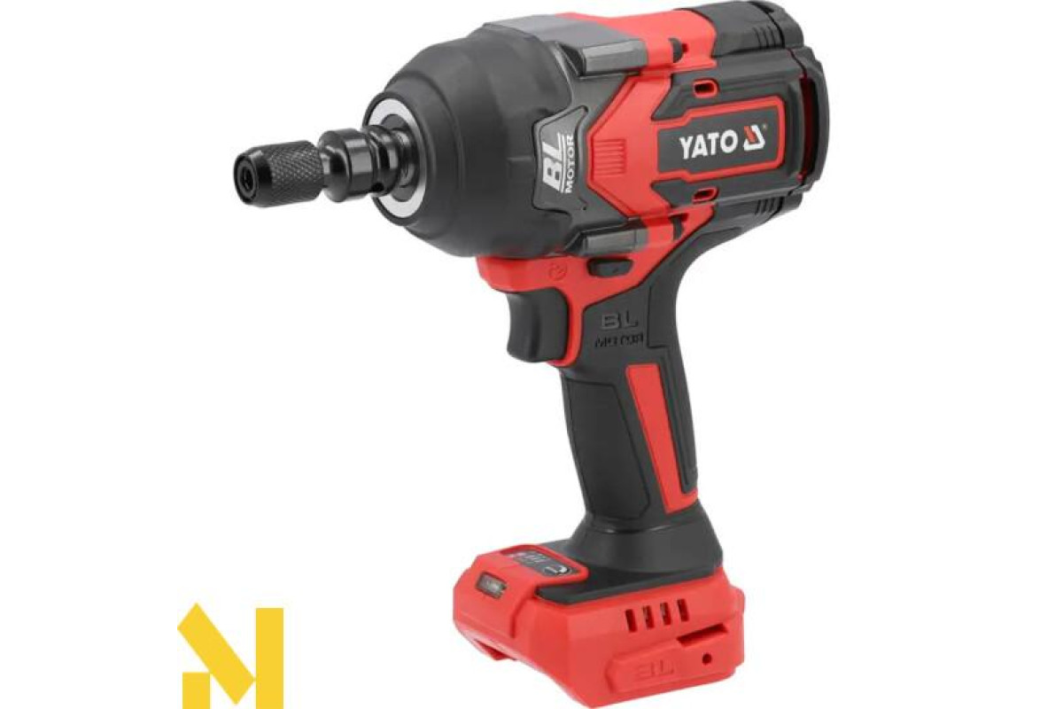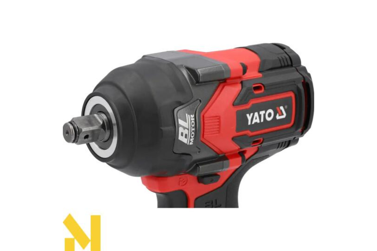 Безщітковий ударний гайковерт із живленням від платформного акумулятора YATO 18 В. Завдяки компактним розмірам і крутному моменту 1200 Нм його можна використовувати як в автосервісах, так і на будівельних майданчиках. Невелика вага дає змогу комфортно працювати з піднятим над головою ключем. Інструмент поставляється з адаптером від 1/2 до 1/4 дюйма.