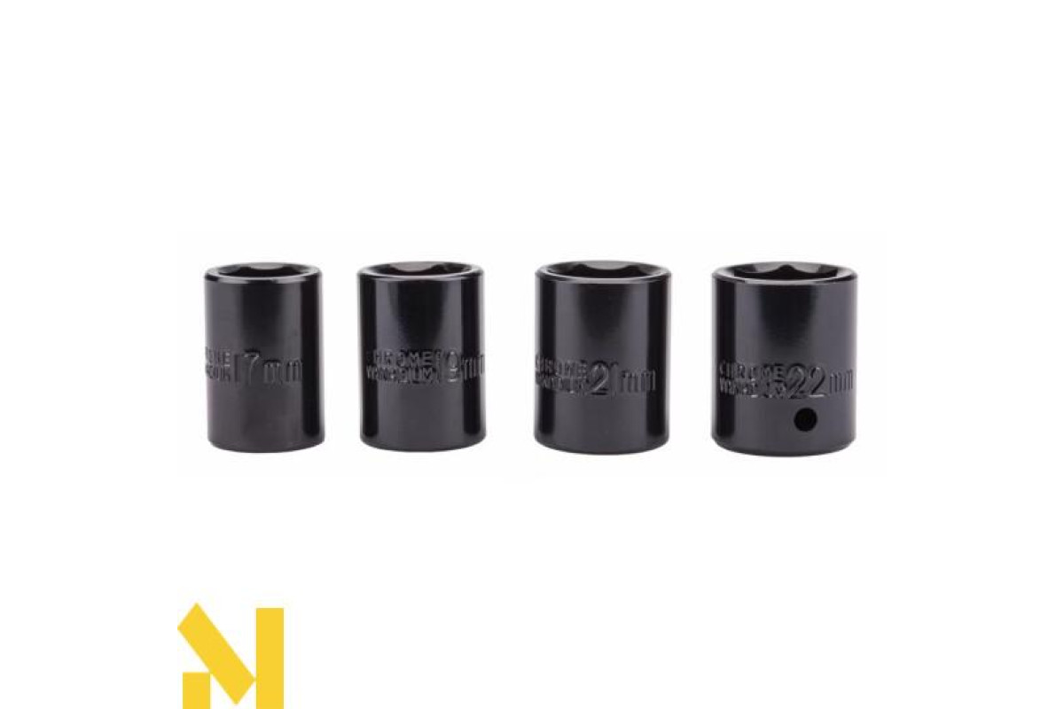 4 хром-ванадієві ударні торцеві головки 17, 19, 21, 22 мм
