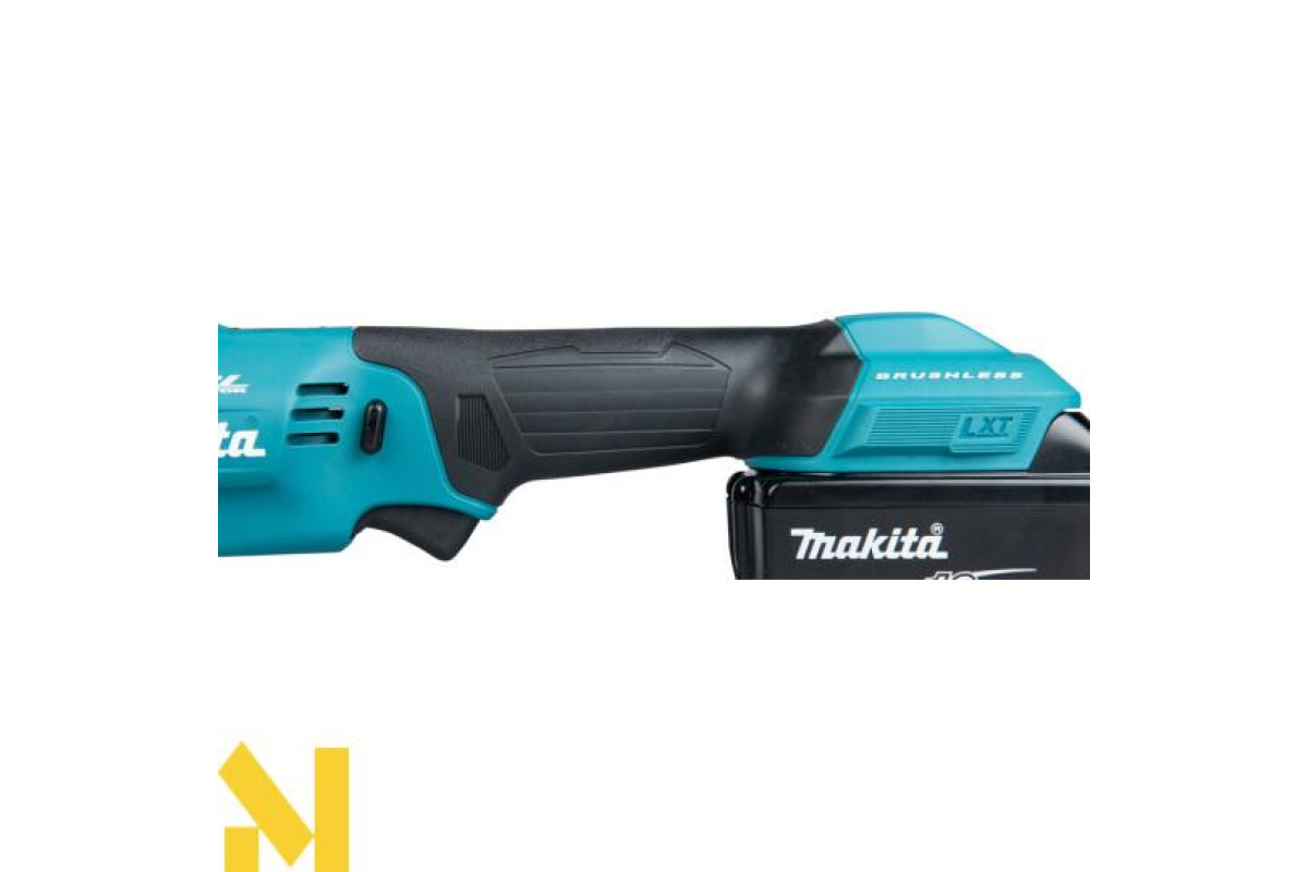 Бездротовий кутовий гайковерт ударного типу з безщітковим двигуном, що живиться від літій-іонного акумулятора LXT 18 В.Завдяки технології XPT пристрій може похвалитися підвищеною стійкістю до пилу та вологи. Він оснащений триступеневим електронним керуванням для максимальної швидкості та частоти ударів. Регулювання швидкості здійснюється за допомогою курка-перемикача. Він також має функцію автоматичної зупинки для обертання вперед та назад і велику кнопку ввімкнення/вимкнення.