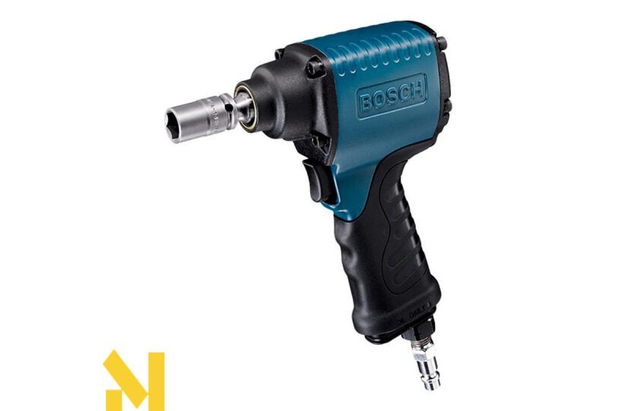 Пневматичний імпульсний гайковерт Bosch 3/8 '' (0607450614). Гайковерт Bosch 3/8 '' (0607450614) має високий крутний момент, має ергономічний дизайн і невелику вагу. Патрон пневматичного імпульсного гайковерта 3/8 '' чотиригранник, різьблення з'єднувального патрубка: 1/4 ", робочий тиск, бар - 6,3, максимальний діаметр шурупа - М14.