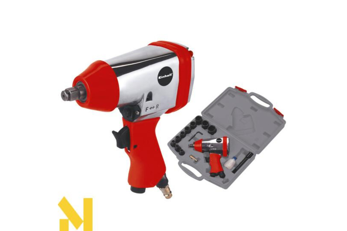 Пневмогайковерт Einhell DSS 260/2 - має компактну конструкцію за рахунок відсутності двигуна. Він призначений для швидкого вкручування / викручування кріплення. Широко використовується в автосервісах, виробничих цехах, ремонтних майстерень. Функція реверсу служить для зміни напрямку обертання головки.