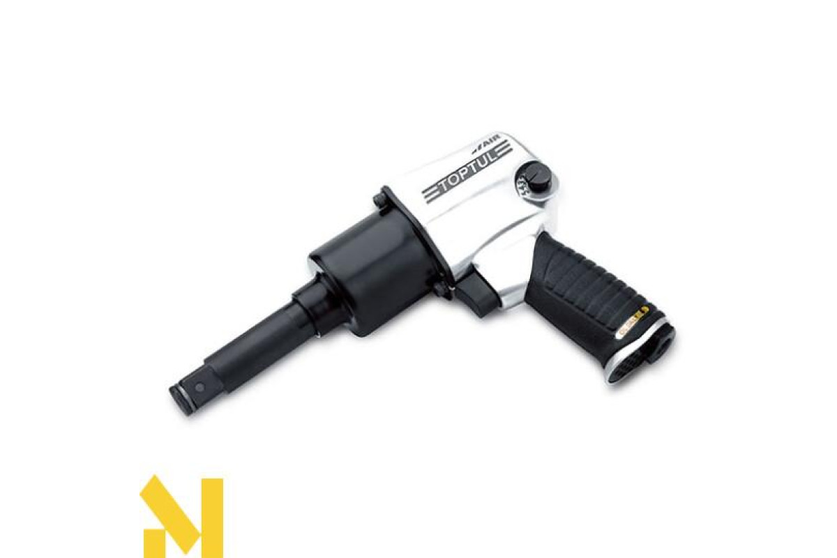 Пневмогайковерт TOPTUL KAAB2460приєднувальний квадрат 3/4", з максимальним створюваним зусиллям 813N/m, і швидкістю обертання 6300об/хв, з виведенням повітря з нижньої частини ручки і шумоглушників.