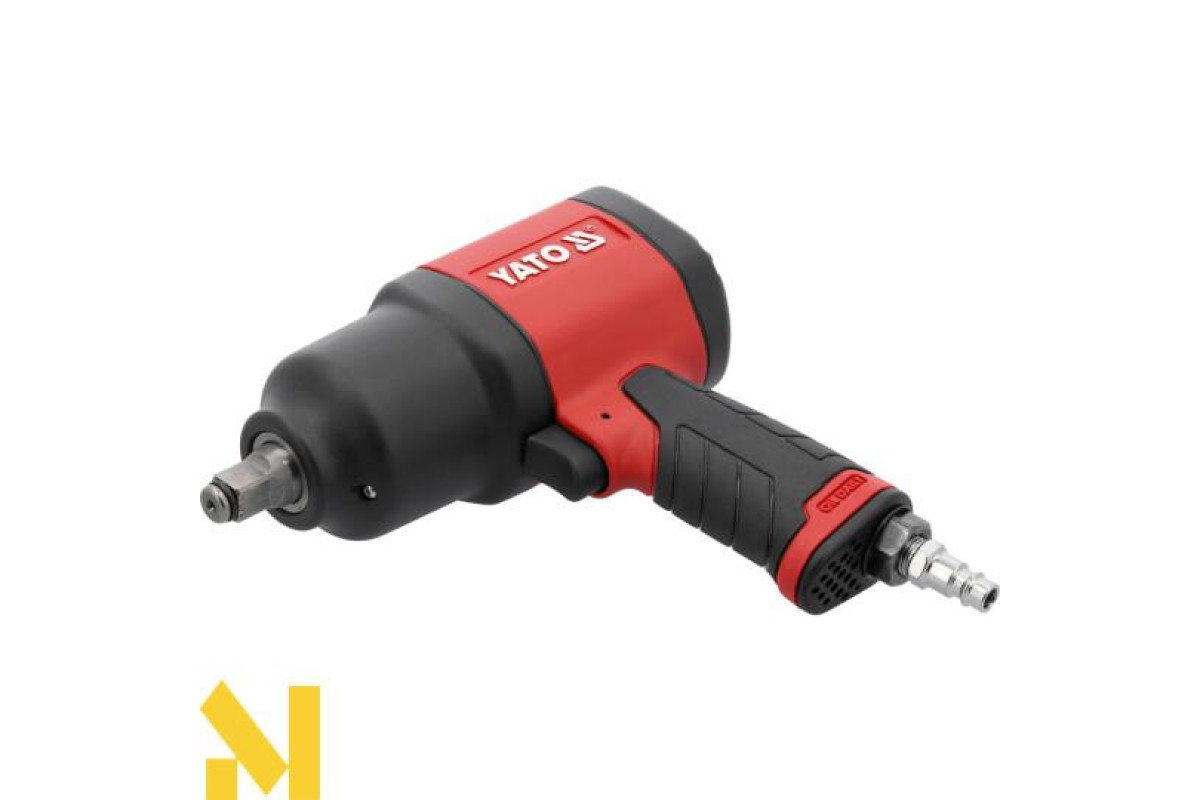 Композитний пневматичний гайковерт 1/2" з силою 1800 Нм. Призначений для використання в промисловості, механосервісах і автомайстернях. Виготовлений з композитного лиття і дюралюмінію. Високу ефективність гайковерта забезпечує ударний механізм TWIN HAMMER. Невеликі розміри і мала вага дозволяє використовувати його в місцях з обмеженим доступом.