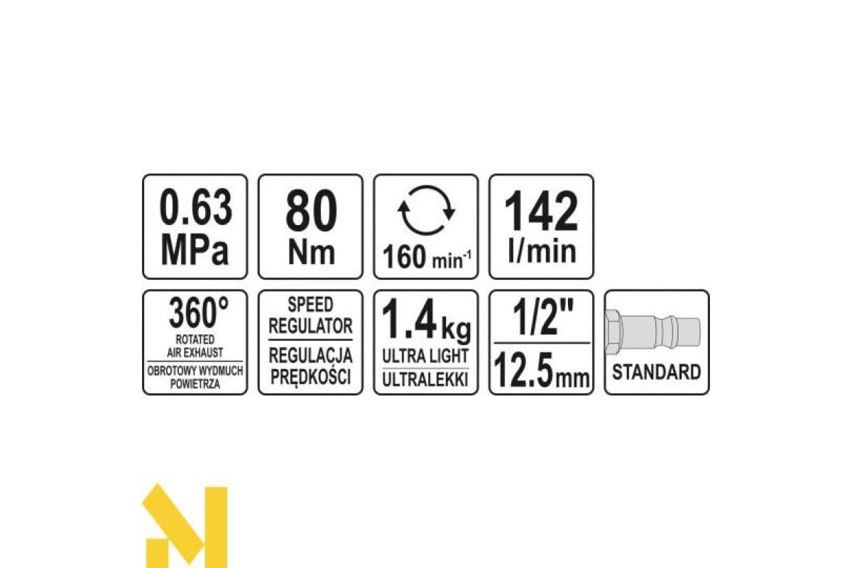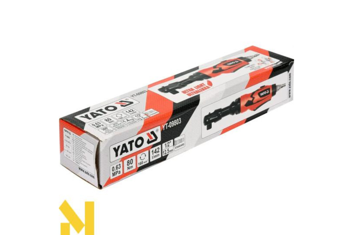 Ультралегка пневматична тріскачка YATO YT-09803 призначена для роботи під великим навантаженням на вулканізаційних та автомобільних заводах - для швидкого монтажу та демонтажу різьбових з'єднань та вузлів.