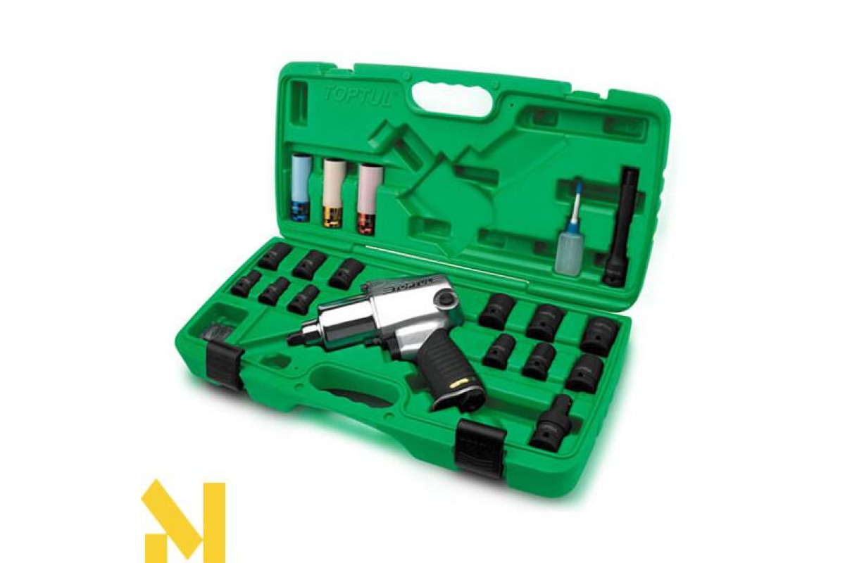 Набір пневмоінструменту TOPTUL GDAI2703 1/2" 27 од. Набір комплектується найпотужнішим пневмогайковертом KAAA1660 на приєднувальний квадрат 1/2 дюйма і зусиллям 949 Нм. У наборі торцеві ударні головки від 10 мм до 24 мм, три шиномонтажні головки 17, 19, 21 мм в спеціальній оболонці захищає колесо від подряпин. Також в комплекті подовжувач на 125 мм і кардан для важкодоступних місць. Весь інструмент у наборі відмінної якості і може застосовуватися при щоденних високих навантаженнях на СТО і автосервісах.