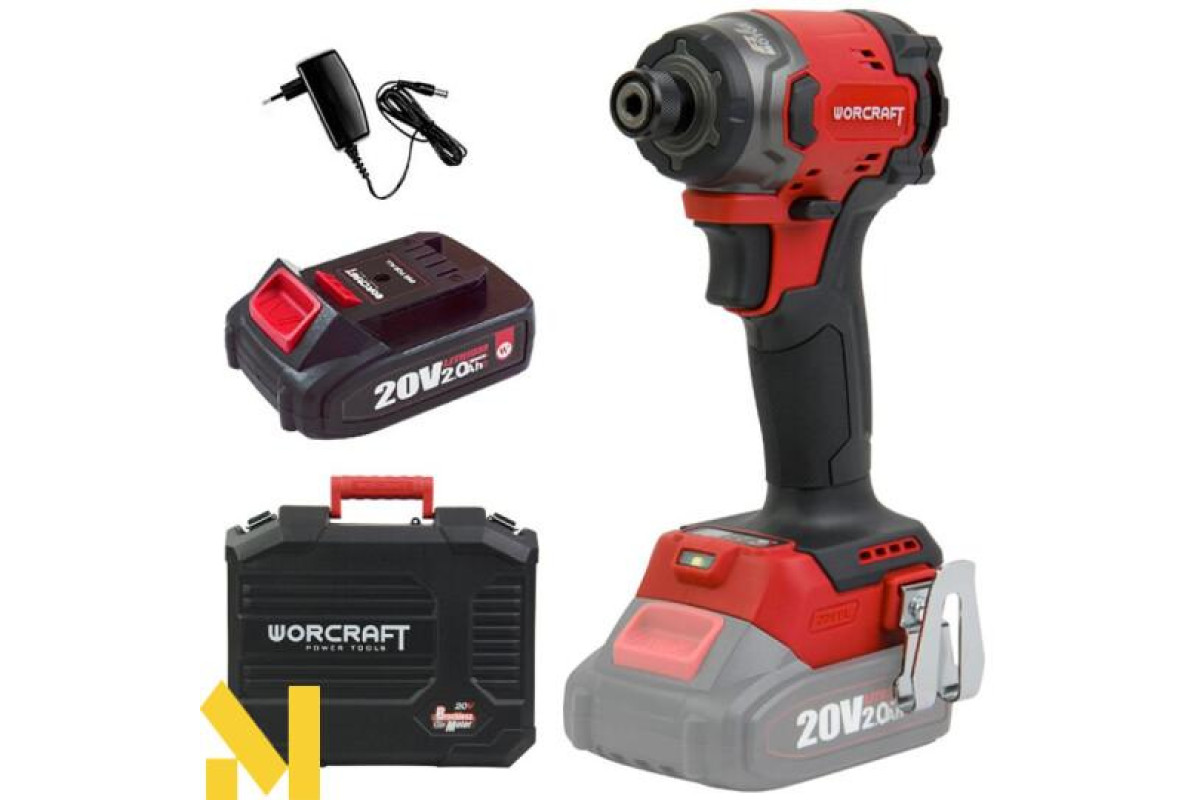 Гайковерт WORCRAFT CIS-S20LiBM-260 поставляється в комплекті з акумулятором, штекерним зарядним пристроєм і міцним пластиковим кейсом.