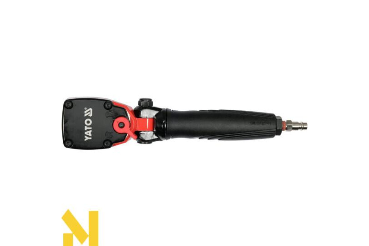 Шарнірний ударний гайковерт YATO YT-09510 з композитних матеріалів з подвійною камерою стиснення, що підвищує продуктивність, та подвійною ударною системою. Ключ ідеально підходить для місць із утрудненим доступом. Зручність використання обумовлена не тільки компактними розмірами, але й ручкою, що повністю обертається, і рухомою головкою на 180 градусів.