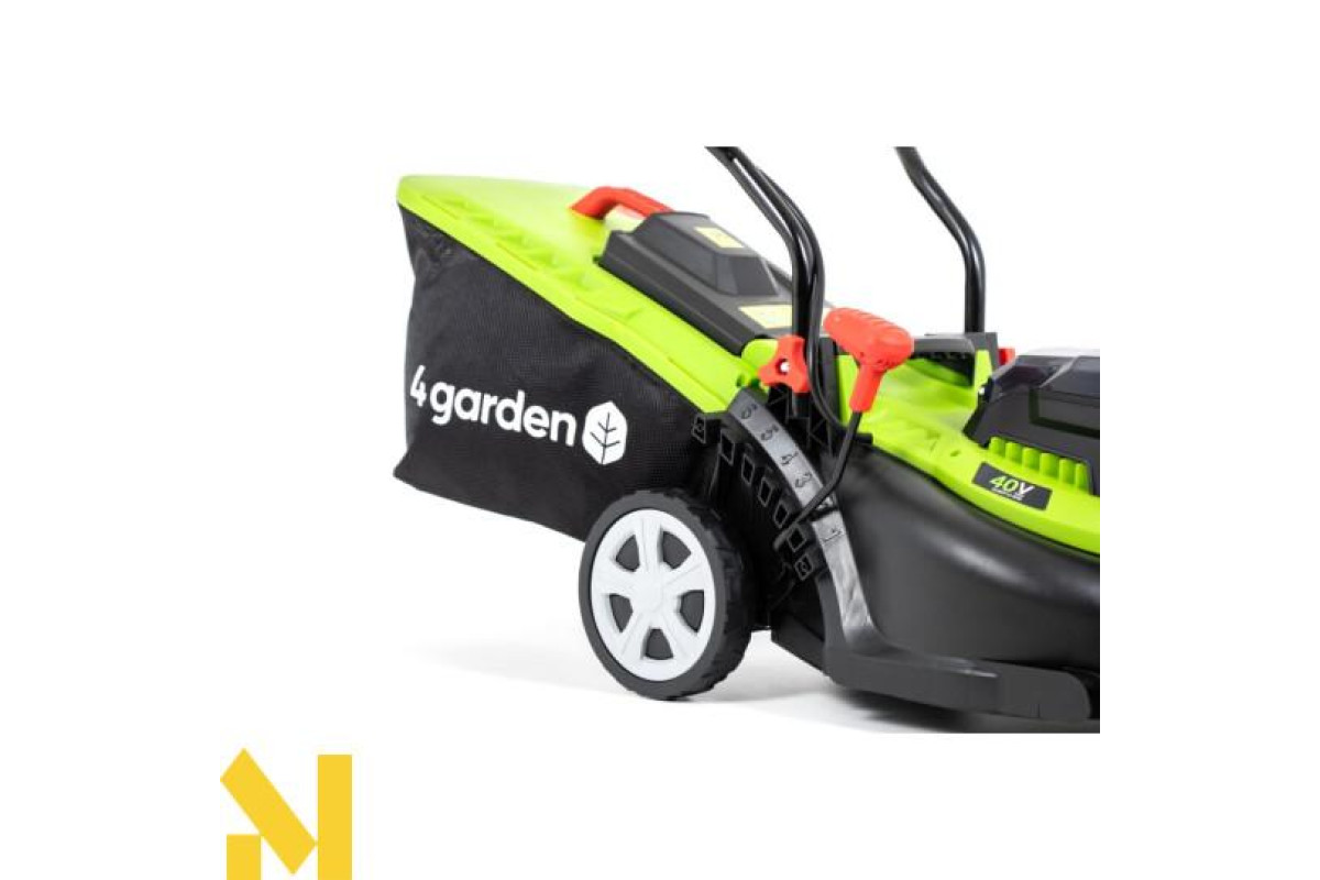 Акумуляторна косарка 4garden AM3422S дозволить вам комфортно косити, не залежно від кабелю, підключеного до джерела живлення, або подразнюючого шуму, що видається топковими пристроями. Двигун постійного струму пристрою живиться від 2 літій-іонних акумуляторів 20 В. Ви можете використовувати акумулятор ємністю 2,0 або 4,0 Ач. Вибравши це обладнання, ви отримаєте робочу ширину 34 см та можливість регулювання висоти скошування дерну за 6 ступенів. В комплект входить кошик для сміття об'ємом 35 літрів, який також має практичний індикатор заповнення. Залежно від акумулятора, що використовується, максимальний час роботи становить 20 або 40 хвилин. Функціональні колеса та вага всього 9 кг означають, що з акумуляторною косаркою 4garden AM3422S ви зможете з комфортом дістатися навіть важкодоступних місць для скошування, де інші пристосування не впоралися.