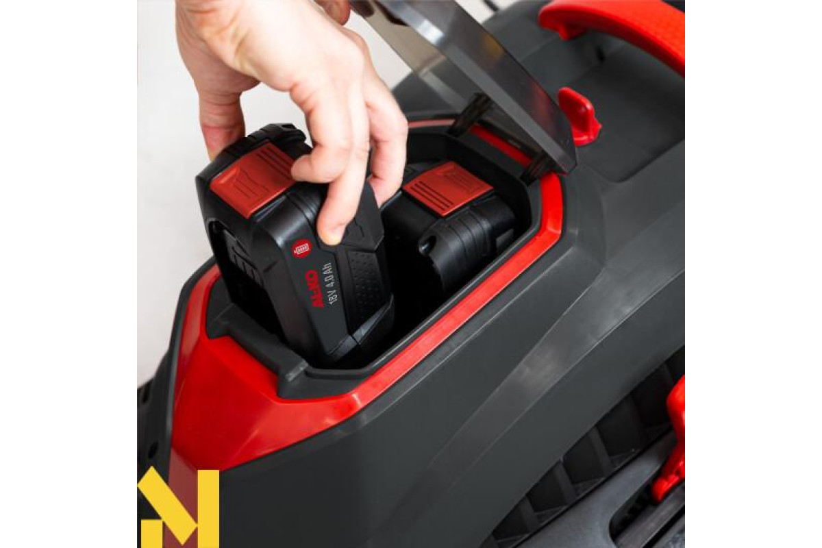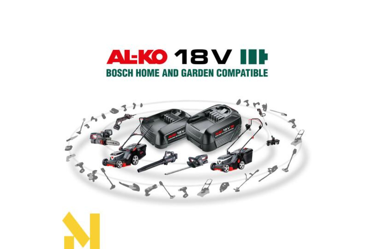 Практична ручка для перенесення забезпечує зручність транспортування, а складна ручка дозволяє заощаджувати місце зберігання. З сімейством акумуляторів AL-KO 18 В, сумісних з Bosch Home & Garden, вона стане ідеальним обладнанням для будь-якого використання завдяки нашим численним садовим інструментам. Крім того, акумулятори та зарядні пристрої сумісні з усіма приладами різних виробників, що працюють з акумуляторною системою Bosch 18 В для дому та саду.
