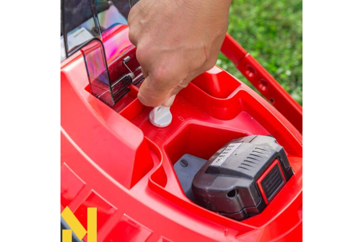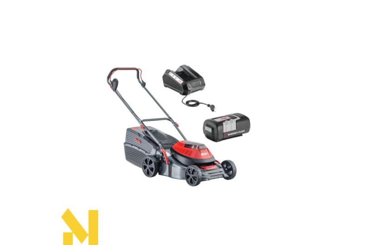 - Літій-іонний акумулятор 40 Вольт гарантує ефективну обробку газонів, площею до 400 кв.м.