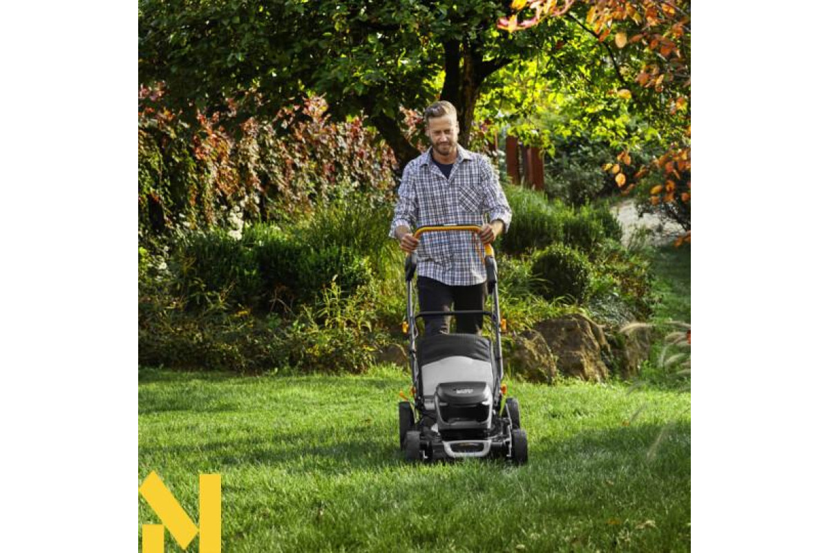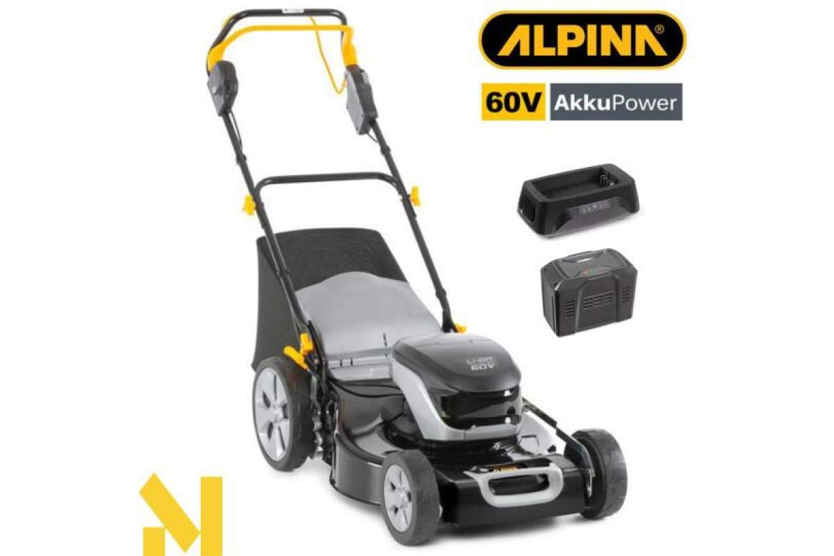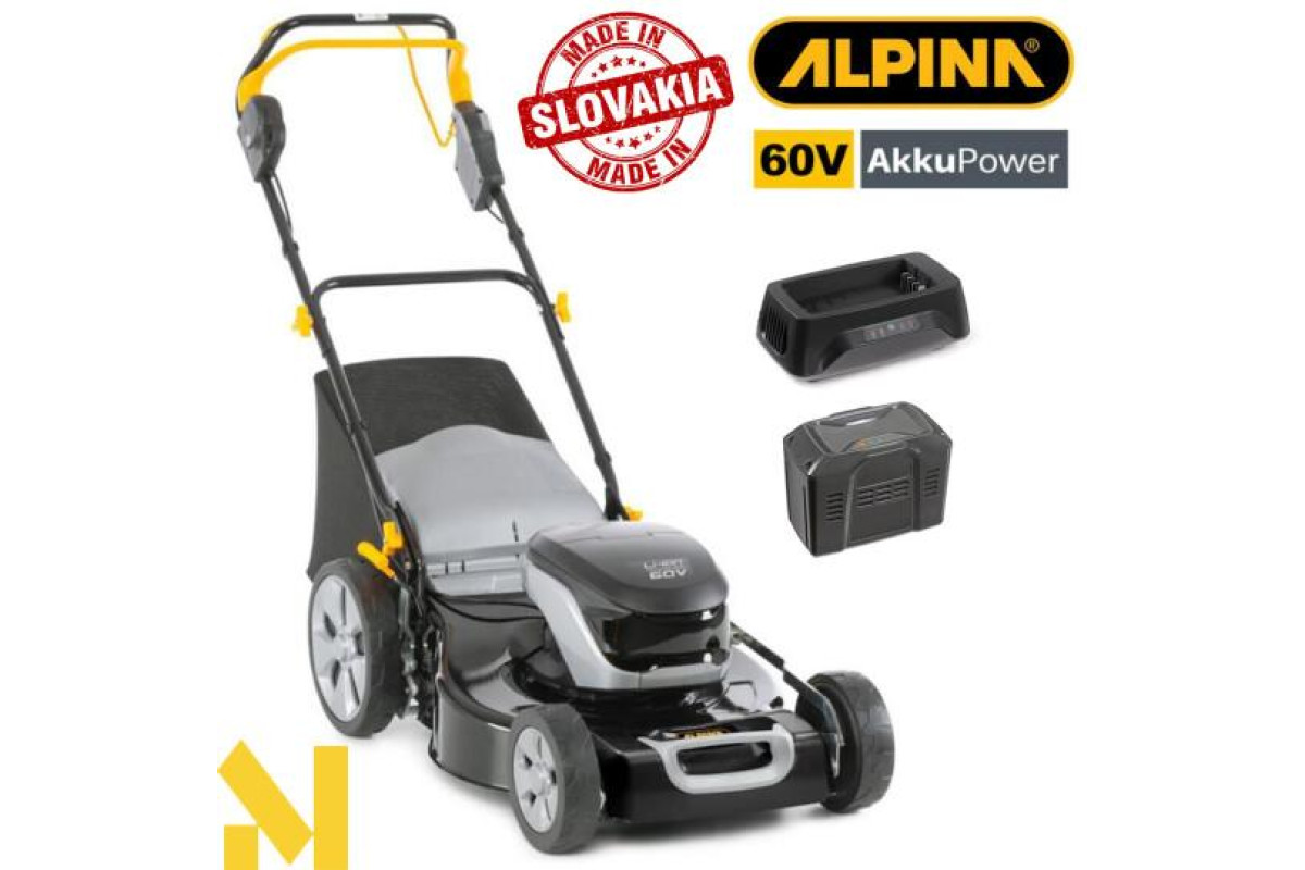 Газонокосарка акумуляторна Alpina AL4 51 S Li - це екологічно чиста косарка з живленням від 60-вольтової батареї, яка гарантує тиху роботу, нульові викиди та низькі вимоги до технічного обслуговування. Потужна, універсальна і проста у використанні, ця газокосарка має сталевий корпус, безщітковий двигун, м'яку ручку, 55-літровий бункер з індикатором заповнення і важіль для центрального регулювання висоти зрізу (5 положень від 27 до 90 мм). З робочою шириною 51 см косарка має колісний привід, що робить її ідеальною для великих газонів.