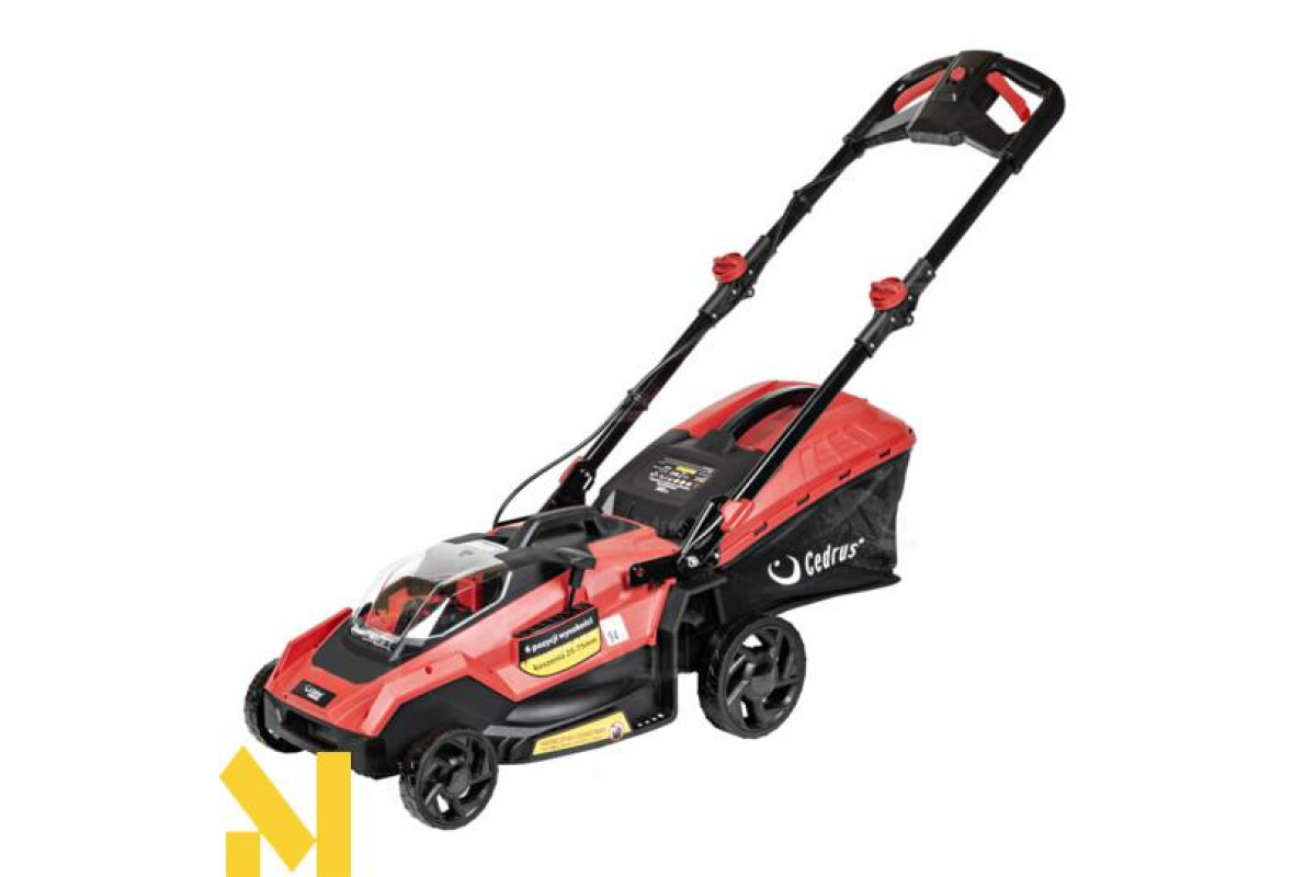 Акумуляторна косарка Cedrus LM40LiX2 з робочою шириною 40 см працює від двох акумуляторів.